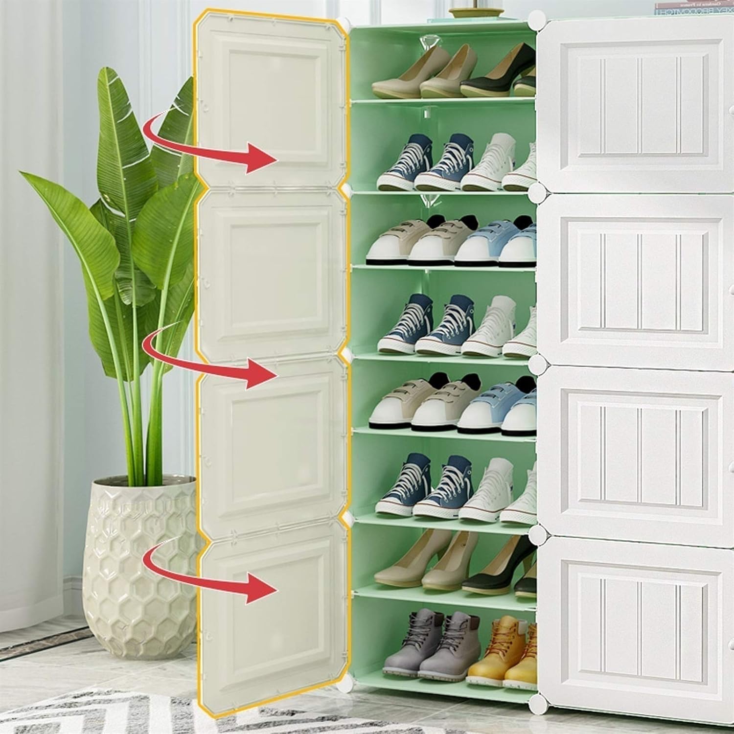 Product name: shoe rack Material: plastic Color:Green Size: length 167cmX width 32cmX height 127cm, Additional features: disassembly Furniture structure: box frame structure Applicable space: bedroom, living room, entrance hall, entrance, corridor, Dormitory,etc. Features: Free combination shoe rack, , plastic material, sturdy structure, strong stability, and space saving. Hold up to 64 Pairs of Shoes Has a small footprint and does not take up space. It can be placed under the bed in the dormitory. Support: The steel frame structure is strong and durable. Boots can be placed by removing the middle layer, which is convenient and practical. With door: transparent and visible, the handle is convenient to use. Material: The plastic structure is sturdy and durable Easy to clean.