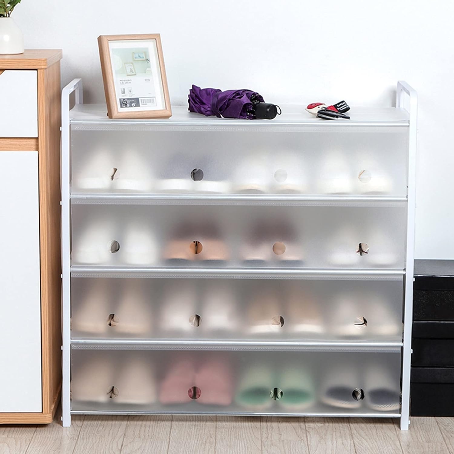 Free Standing Shoe Racks Shoe Closet 4-Layer Shoe Rack Organizer ABS Storage Bracket Rectangular Organizer White Translucent Shoe Organizer for Closet Floor (Color : Clear) (Clear)