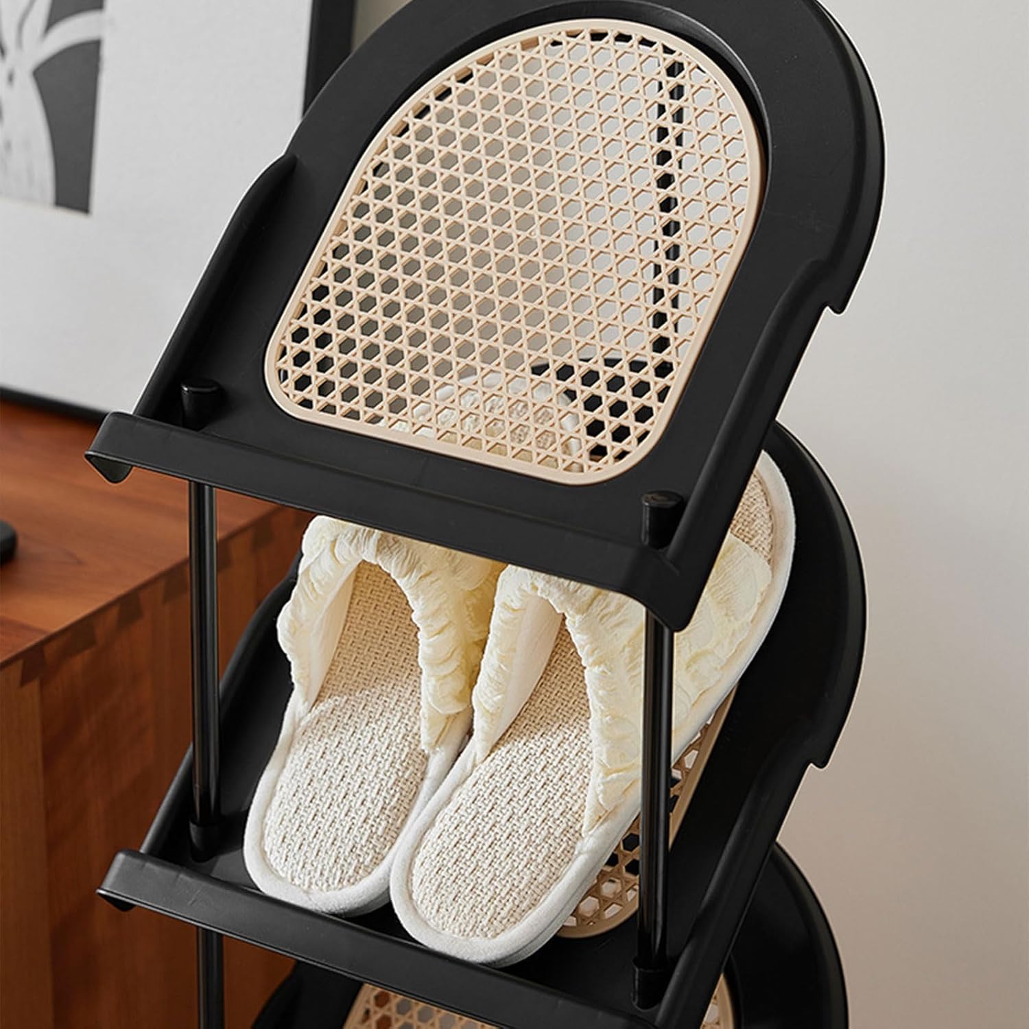 Entryway Footwear Rack Slanted Slots Easy Daily Organization Shoe Storage Rack for Dorm Entry UseFeatures:This multi layer shoe rack maximizes space efficiency with its compact design, perfect for tight spots like dorm rooms or entryways, providing ample storage while saving valuable floor space.Featuring a unique angled insertion structure, it allows for easy placement and retrieval of shoes, ensuring a neat and organized display, and is crafted from PP materials for long lasted use.Ideal for families, students in dorms, or anyone seeking efficient footwear organization in high traffics areas with limited room.Perfectly suited for placement near entrance doors, in small apartments, or confined spaces to maintain daily and convenience during entry and exit.With its sleek minimalists styles, this shoe rack seamlessly integrates into various home decors, enhancing both functionality and aesthetic appeal for a neatly Specifications Component: ppSize:Approx.2 Layer:46cm/18.11inch3 Layer:66cm/25.98inch4 Layer:86cm/33.86inch5 Layer:106cm/41.73inch6 Layer:126cm/49.61inch7 Layer:146cm/57.48inchColor:BlackPackage Includes:Multi-layer Shoe Cabinet×1Note:1.Please allow 1-2cm errors due to manual measurement, make sure that you do not mind before you order. 2.Due to the difference between different monitors, the picture may not reflect the actual color of the item.