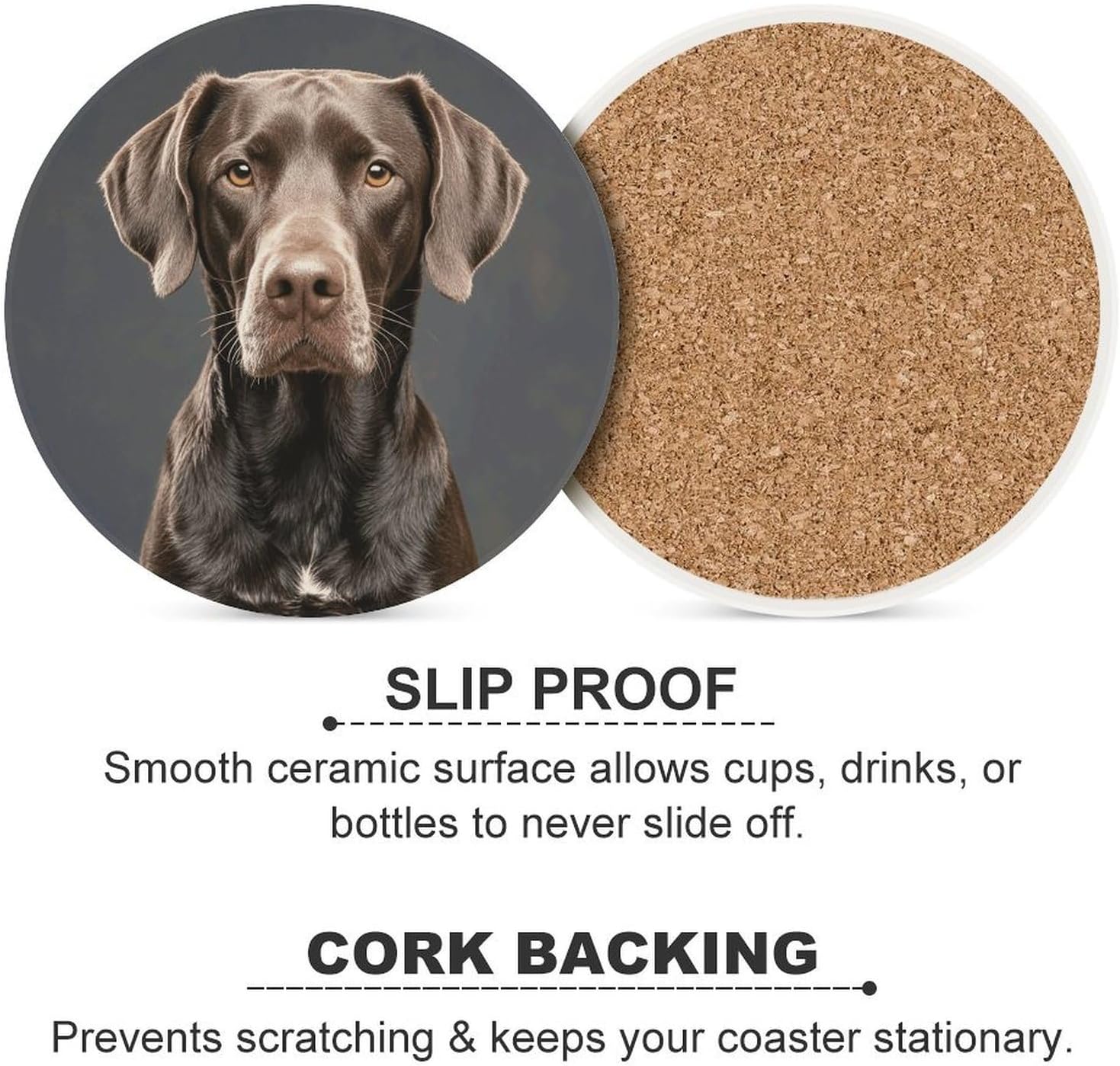 Transform your daily hydration into a stylish and protective ritual with our Cute Ceramic Coasters with Cork BottomDrink Coasters for Home Cup Mats for Table Rustic Coasters Round Coasters Unique Coasters Vintage Coasters Art Teacher Gifts Round Drink Coasters for Hot Cups Funny Coasters Outdoor Coasters for Patio Table Waterproof Bar Coasters Non-Slip Table Coasters Absorbent Coasters Ceramic Car Coasters for Cup Holders Ceramic Cup Holder Coaster for Car Cool Coasters Pretty Coasters White Wine Coasters Housewarming Gifts CoastersSuitable Size:Heat resistant coasters for drinks arr crafted from ceramic and finished with a natural cork base, each coaster is as practical as it is sustainable. The 4.1-inch round size is perfectly proportioned to sit under a variety of glassware - from your favorite coffee mug and ceramic teacup to tall glasses of iced tea or bottles of beer.Double Protection:The heat-resistant ceramic top acts as a shield, guarding your cherished wood tables, kitchen countertops, and office desks against hot beverages, unsightly water rings, and condensation . Meanwhile, the soft, non-slip cork bottom plays a dual role: it prevents the tea coasters from sliding around when you reach for your drink, and it ensures your furniture remains free from scratches and scuffs.Multi Purpose: Whether you're decorating a coffee table in the living room, adding a functional touch to a home office, or setting up a bar cart for entertaining, these decorative coasters are the perfect blend of utility and subtle style.Material: Ceramic & CorkSize: 4.1 inches (Diameter)Care: Wipe clean with a damp cloth.Designed for the modern home, these heat resistant cup mats blend functionality with minimalist aesthetics to keep your surfaces pristine.