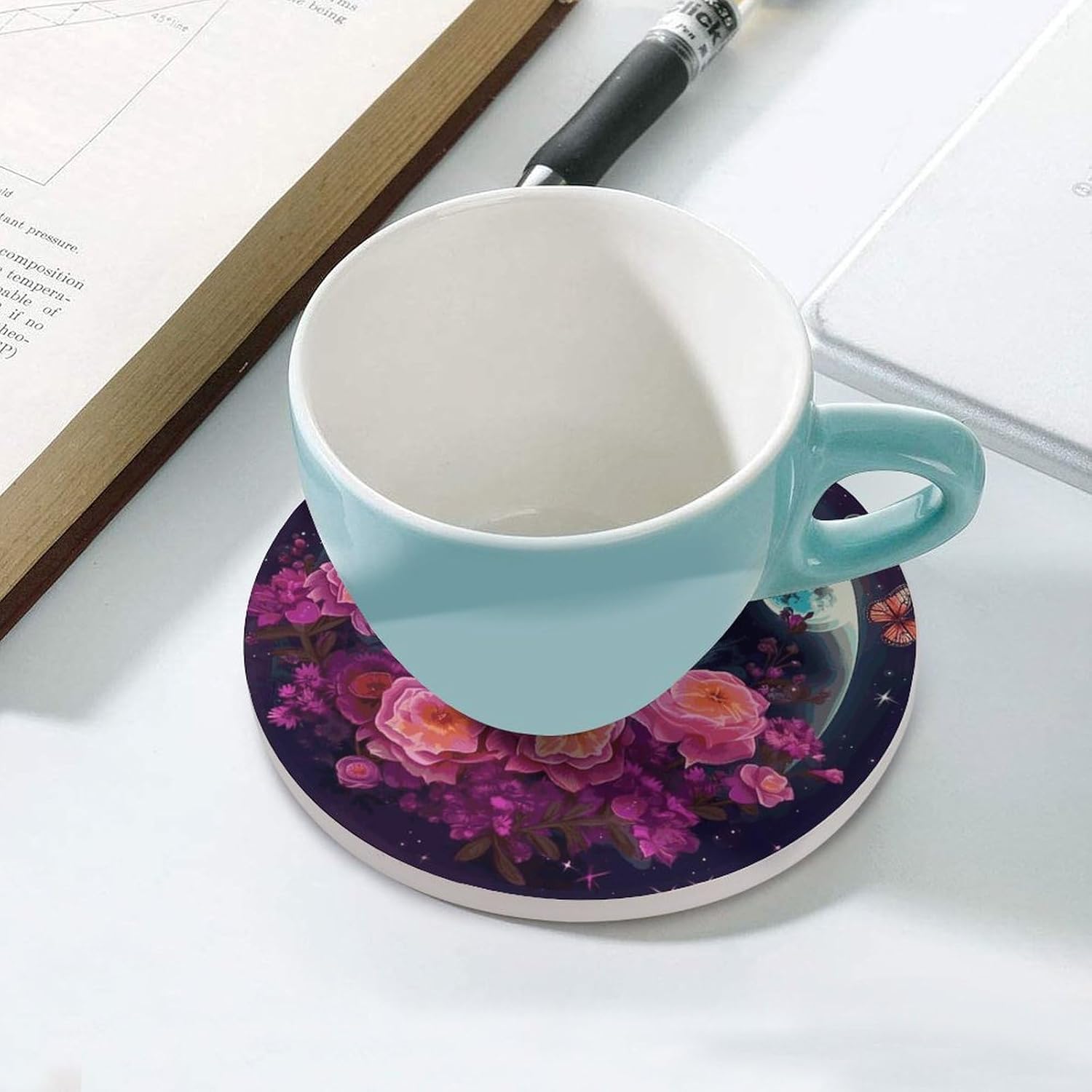 Transform your everyday drinkware experience with our Personality Round Mug Mat set, designed to blend functionality with eye-catching style. Whether you're sipping morning coffee, afternoon tea, or a relaxing evening drink, these Drink Coasters for Drinks offer the perfect balance of protection and aesthetics. The ceramic surface handles hot and cold beverages alike, while the cork backing ensures your favorite tables and countertops stay free from scratches, rings, and moisture. Available in 4PCS or 6PCS packs, these coasters are tailored to fit your daily use, whether for personal use or entertaining guests.Say goodbye to messy spills and slippery cups with our Waterproof Coasters and Anti-slip Drink Cup Mat combination. The smooth ceramic top is not only easy to wipe clean but also resists water absorption, ensuring spills don’t leave lasting marks. At 4.1 inches in diameter, each Round Ceramic Drink Coaster is sized to fit most standard mugs, glasses, and cups, making it a versatile addition to any home or office. Whether you're hosting a casual gathering or setting up a cozy workspace, these coasters keep your surfaces protected while adding a subtle, stylish touch to your decor.Elevate your space with our Fashion Coasters that double as charming coffee table decor. These Cute Drink Coasters feature a sleek round design that complements any interior style,Perfect for your kitchen, living room, bedroom, office, or bar, they make a thoughtful gift for friends, family, or colleagues who appreciate both practicality and style. Don’t settle for basic coasters—upgrade to our Heat Insulation Round Cup Mat set and enjoy a cleaner, more organized, and aesthetically pleasing environment with every sip.
