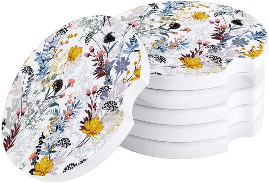 Absorptive material means it never has a puddle of water left behind and glasses don't stick when they're wet like they do with other coasters.Cork on the back of the coaster can not only protect the desktop from scratches, but also provide additional gripping to the land, tightly stick to the desktop, easily handles bumps and drops.Absorbent stone coasters for drinks, beer. Beautiful coasters set, make a great gift for your home, office, bar, very decent housewarming gift or for your own living room.Widely uses: Suitable for kitchen, dining table, restaurant, Car ,hotel or business office.SpecificationsMaterial: CeramicDiameter: 6.5cmColor: shownShape: RoundFeature : Absorbent,Heat-insulated and Non-SlipPackage Includes: 4/6pcs x Car Coaster (Others Not Included)Notes: 1. Only sell main products, not other products.2. Since manual measurement is required, please leave a space of 1-3 cm.3. Due to screen differences, the color may be slightly different from your expected color, please allow.Remind:After receiving the packaging, please check the packaging and the product carefully. If the received item is defective or has any questions, please us via email to resolve the problem. We will reply as soon as possible and do our best to meet yourVersatile & Ideal for Choiceing : Whether it's for your kitchen, hotel, bar, café, restaurant, or office, these cute coasters are a perfect fit. They also serve as ideal choice and decorations for festivals, birthdays, weddings, spring gatherings, and more. Show your loved ones how much you care with this thoughtful and practical choice.