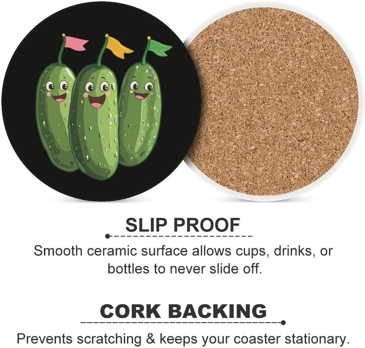 Ceramic Coaster with Cork Base Funny Absorbent Coasters Set Suitable for Kinds of Cups, the absorbent ceramic coasters comes with vibrant color and beautiful design, goes with everything