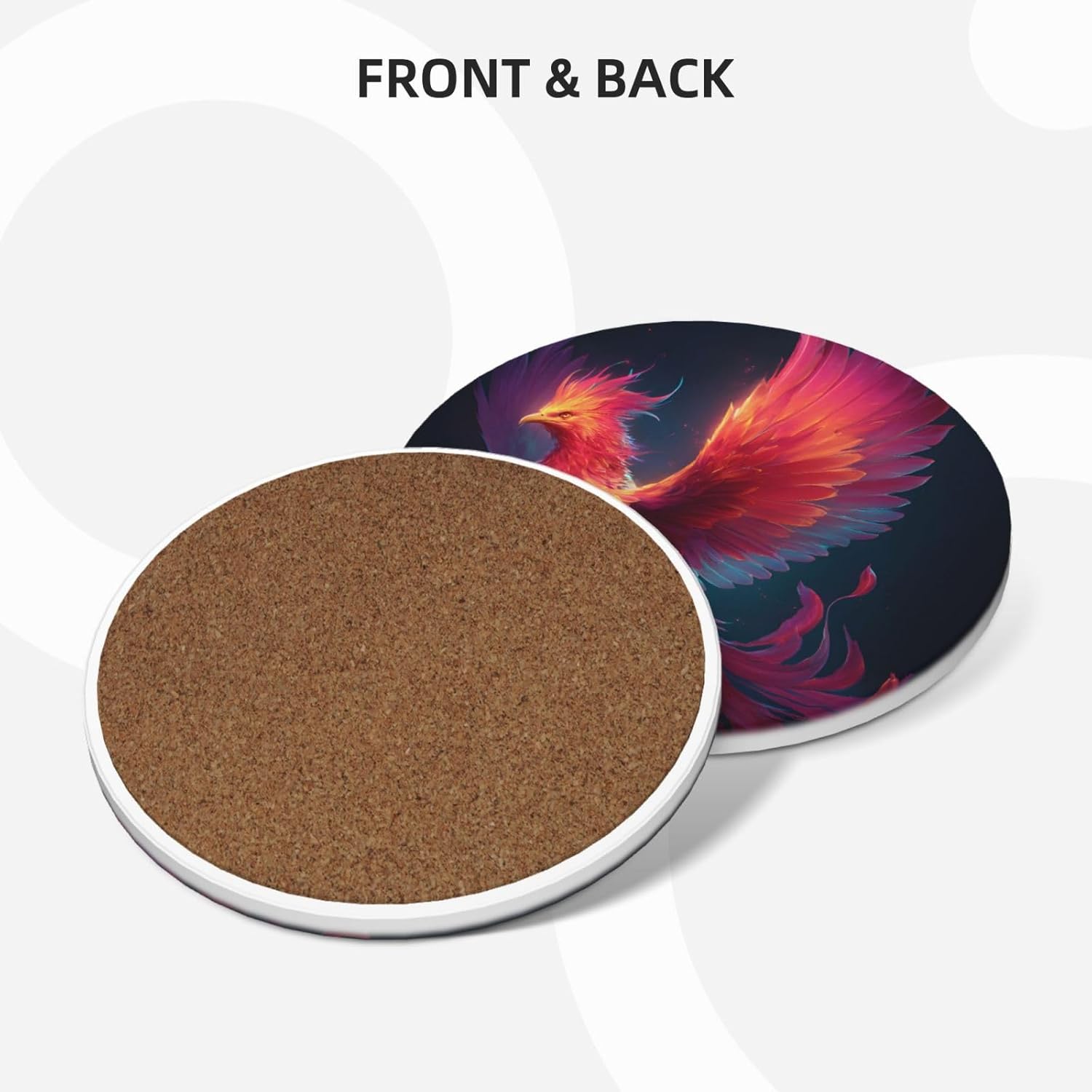 Product Name: DCEHGEW Ceramic Drink CoastersMaterial Type: Ceramic with cork bottomSize: Round: 4.1 x 4.1 inches, Square: 3.9 x 3.9 inches, Hexagon: 4.3 x 3.7 inchesPattern: Fantasy Phoenix About Our Ceramic Absorbent Coasters:Product Features - Crafted from high-quality ceramic, these coasters are odorless and eco-friendly. Their superior absorbency keeps your surfaces dry by quickly soaking up spills from coffee, cola, and other beverages within 10-15 seconds.Applicable Scenarios - Perfect for adding a stylish touch to your kitchen, living room, bar, hotel, or restaurant. These coasters are an ideal present for birthdays, Mother's Day, Father's Day, Valentine's Day, anniversaries, housewarming celebrations, or Christmas.Accessory Structure - Each set includes 6 ceramic coasters with cork bottoms, accompanied by a sleek black metal stand for organized and aesthetic storage. Choose from three different shapes to suit your style and needs.Washing Instructions - Easily clean these coasters with water or a damp cloth.Special NoteDue to different measurement methods, a deviation of up to 0.3 cm in size is considered normal.Please Note:The product images are for reference only. Actual products may vary slightly due to production factors such as batch differences and machine settings. Minor variations in color, position, and size are normal and not considered defects. Thank you for your understanding!Customer Service:We want to make sure you have an amazing experience with us. Please contact us with any feedback you may have. We love to hear from you and usually respond within 12-24 hours.