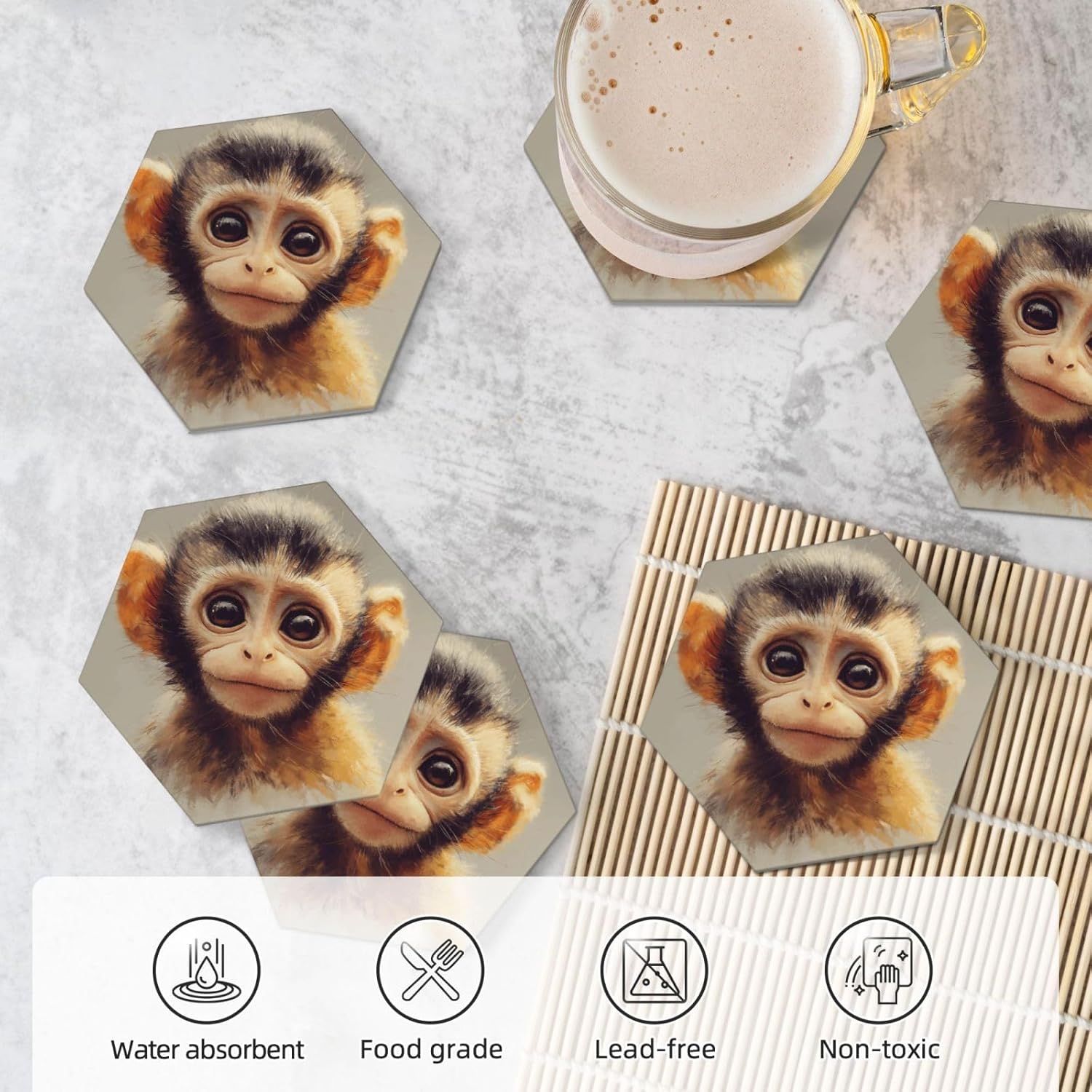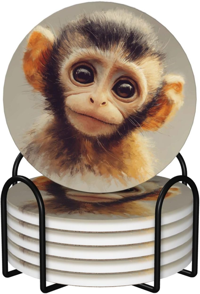 Product Name: DCEHGEW Ceramic Drink CoastersMaterial Type: Ceramic with cork bottomSize: Round: 4.1 x 4.1 inches, Square: 3.9 x 3.9 inches, Hexagon: 4.3 x 3.7 inchesPattern: Cute Monkey About Our Ceramic Absorbent Coasters:Product Features - Crafted from high-quality ceramic, these coasters are odorless and eco-friendly. Their superior absorbency keeps your surfaces dry by quickly soaking up spills from coffee, cola, and other beverages within 10-15 seconds.Applicable Scenarios - Perfect for adding a stylish touch to your kitchen, living room, bar, hotel, or restaurant. These coasters are an ideal present for birthdays, Mother's Day, Father's Day, Valentine's Day, anniversaries, housewarming celebrations, or Christmas.Accessory Structure - Each set includes 6 ceramic coasters with cork bottoms, accompanied by a sleek black metal stand for organized and aesthetic storage. Choose from three different shapes to suit your style and needs.Washing Instructions - Easily clean these coasters with water or a damp cloth.Special NoteDue to different measurement methods, a deviation of up to 0.3 cm in size is considered normal.Please Note:The product images are for reference only. Actual products may vary slightly due to production factors such as batch differences and machine settings. Minor variations in color, position, and size are normal and not considered defects. Thank you for your understanding!Customer Service:We want to make sure you have an amazing experience with us. Please contact us with any feedback you may have. We love to hear from you and usually respond within 12-24 hours.