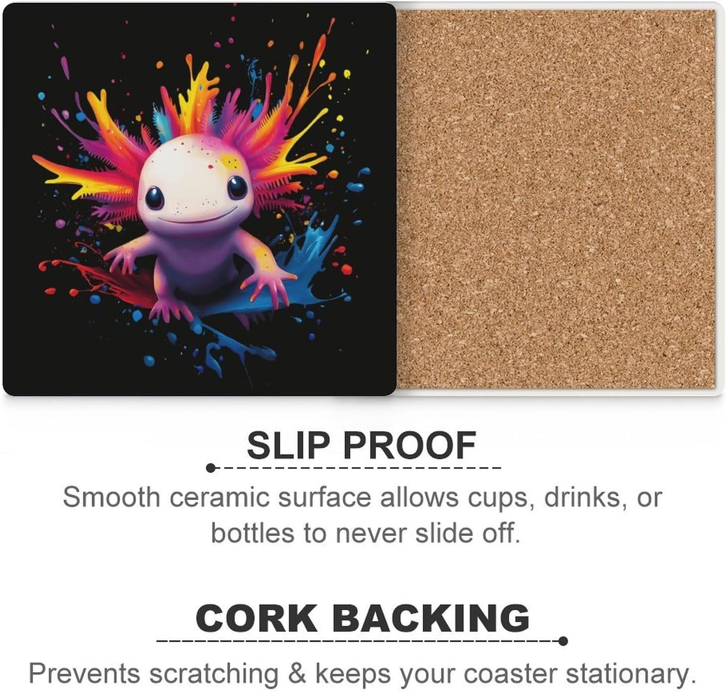 Cute Printed Absorbent Ceramic Coaster for Drinks Funny Coasters with Cork Base Suitable for Kinds of Mugs, Cups, Prevent Tabletop Wear And Scratches, and is Easy to Clean