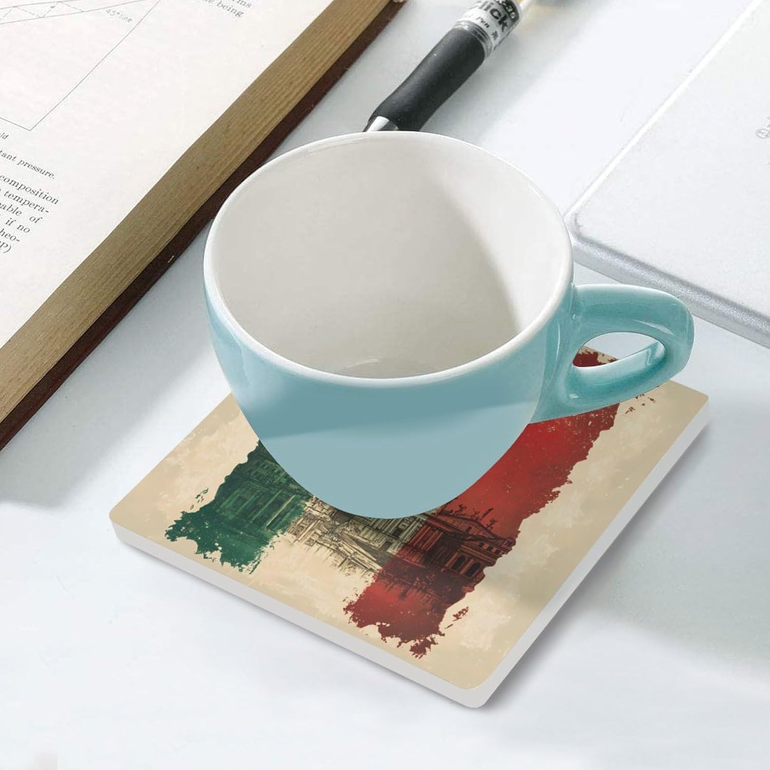 Cute Printed Absorbent Ceramic Coaster for Drinks Funny Coasters with Cork Base Suitable for Kinds of Mugs, Cups, Prevent Tabletop Wear And Scratches, and is Easy to Clean