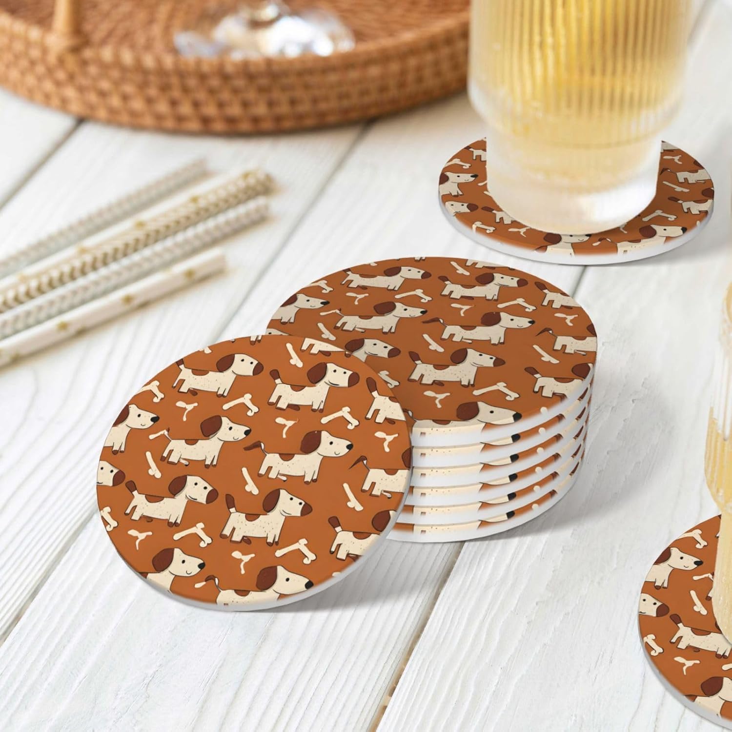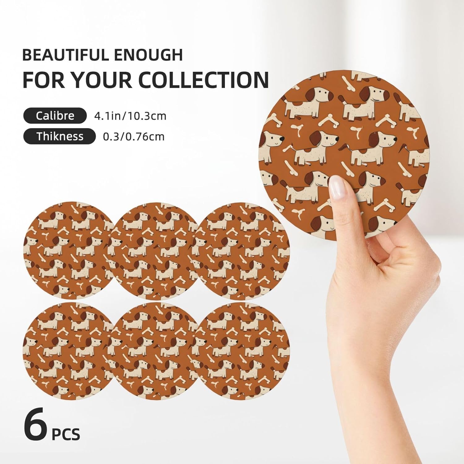 Product Name: DCEHGEW Ceramic Drink CoastersMaterial Type: Ceramic with cork bottomSize: Round: 4.1 x 4.1 inches, Square: 3.9 x 3.9 inches, Hexagon: 4.3 x 3.7 inchesPattern: Brown and white dog About Our Ceramic Absorbent Coasters:Product Features - Crafted from high-quality ceramic, these coasters are odorless and eco-friendly. Their superior absorbency keeps your surfaces dry by quickly soaking up spills from coffee, cola, and other beverages within 10-15 seconds.Applicable Scenarios - Perfect for adding a stylish touch to your kitchen, living room, bar, hotel, or restaurant. These coasters are an ideal present for birthdays, Mother's Day, Father's Day, Valentine's Day, anniversaries, housewarming celebrations, or Christmas.Accessory Structure - Each set includes 6 ceramic coasters with cork bottoms, accompanied by a sleek black metal stand for organized and aesthetic storage. Choose from three different shapes to suit your style and needs.Washing Instructions - Easily clean these coasters with water or a damp cloth.Special NoteDue to different measurement methods, a deviation of up to 0.3 cm in size is considered normal.Please Note:The product images are for reference only. Actual products may vary slightly due to production factors such as batch differences and machine settings. Minor variations in color, position, and size are normal and not considered defects. Thank you for your understanding!Customer Service:We want to make sure you have an amazing experience with us. Please contact us with any feedback you may have. We love to hear from you and usually respond within 12-24 hours.