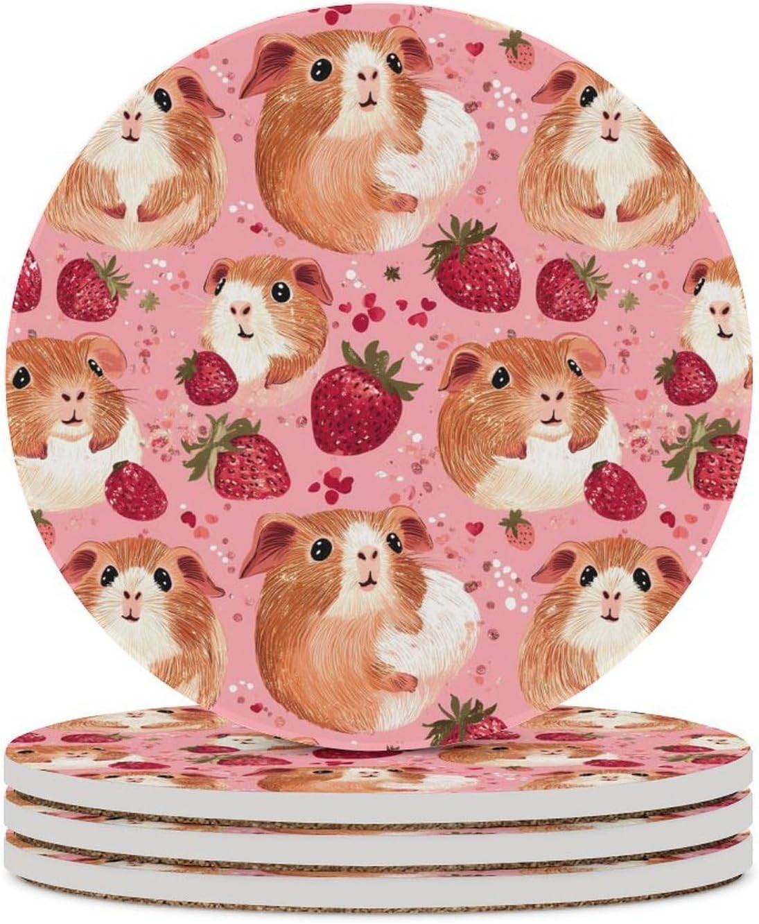 Cute Printed Round Drinks Absorbent Ceramic Coaster with Cork Base Suitable for Kinds of Mugs, Cups, Prevent Tabletop Wear And Scratches, and is Easy to Clean