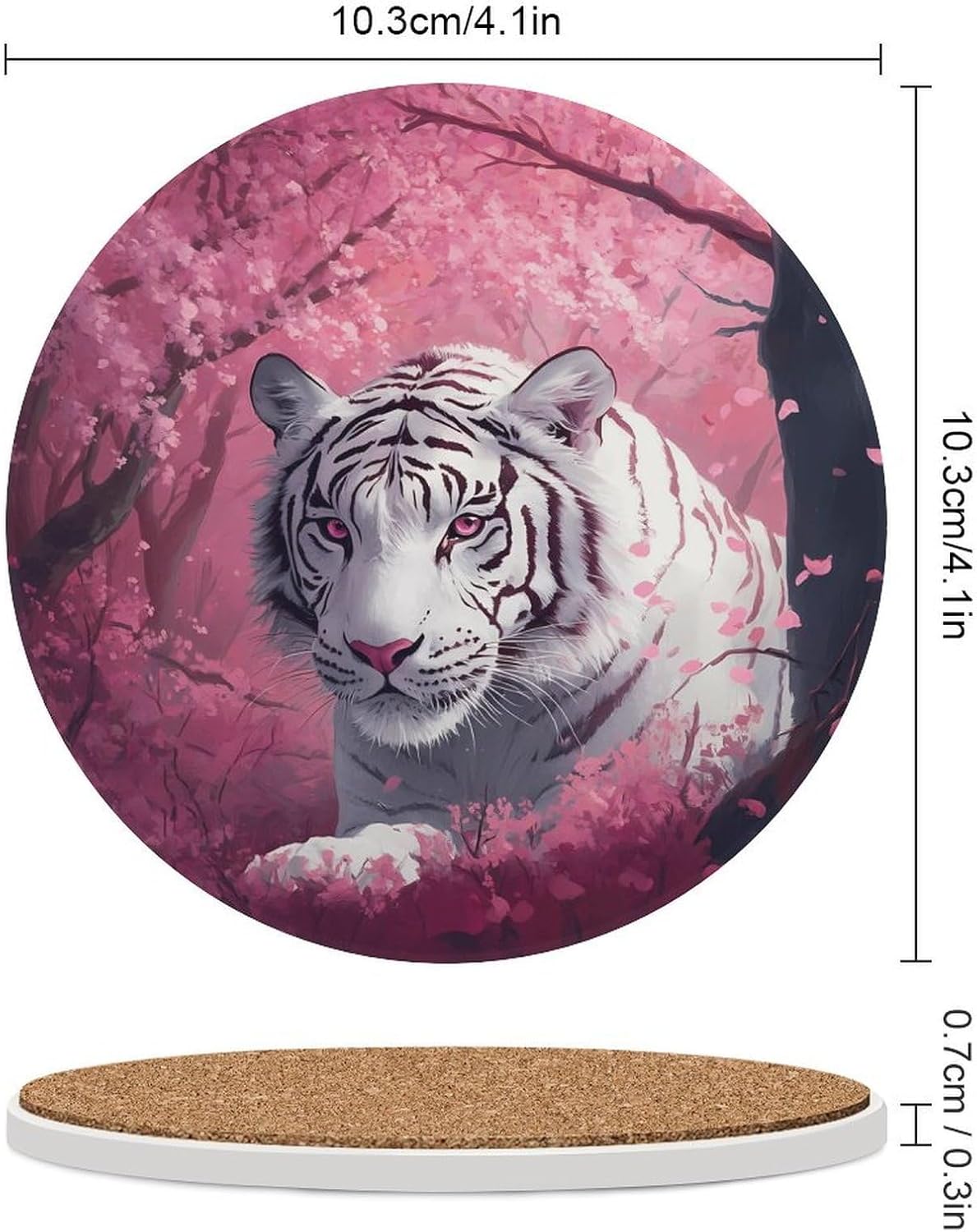 Cute Printed Round Drinks Absorbent Ceramic Coaster with Cork Base Suitable for Kinds of Mugs, Cups, Prevent Tabletop Wear And Scratches, and is Easy to Clean