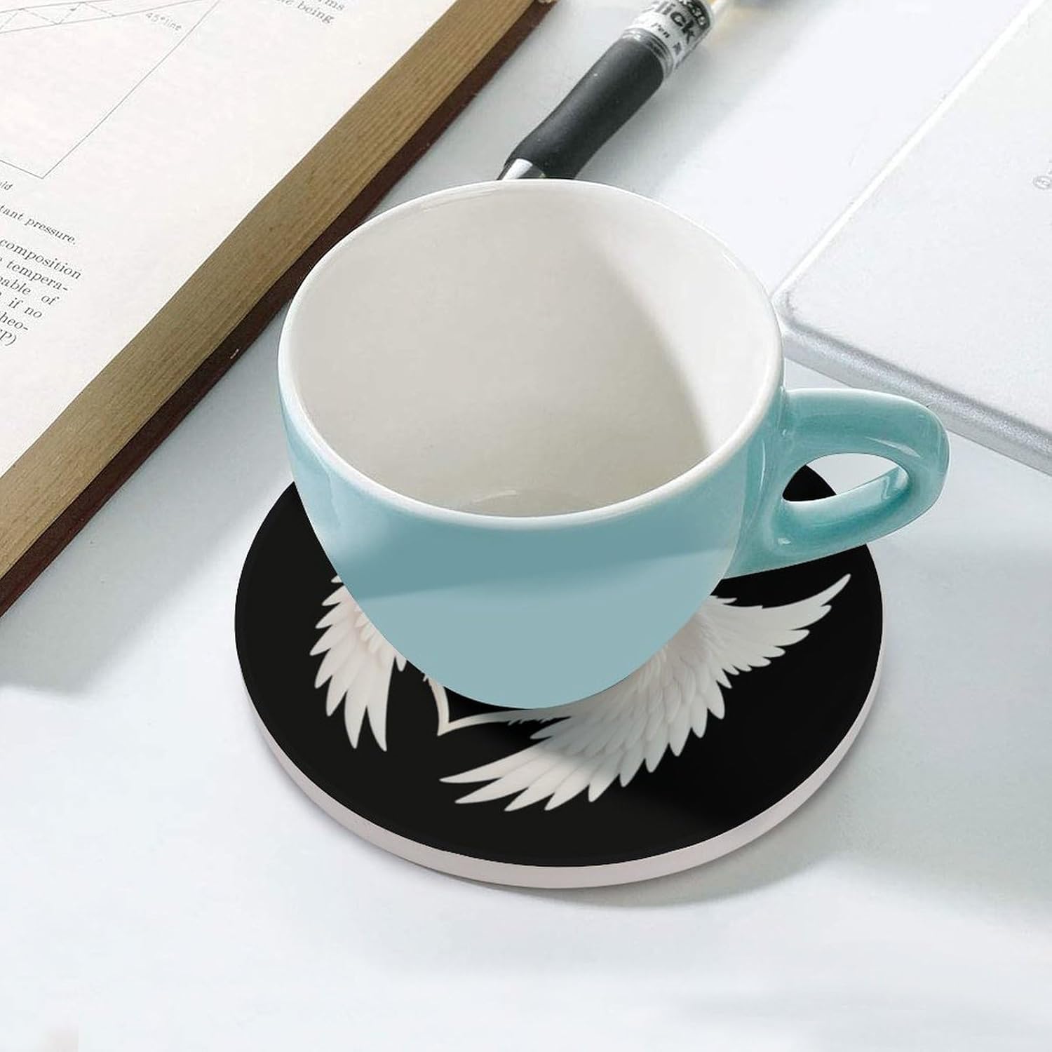 Cute Printed Round Drinks Absorbent Ceramic Coaster with Cork Base Suitable for Kinds of Mugs, Cups, Prevent Tabletop Wear And Scratches, and is Easy to Clean