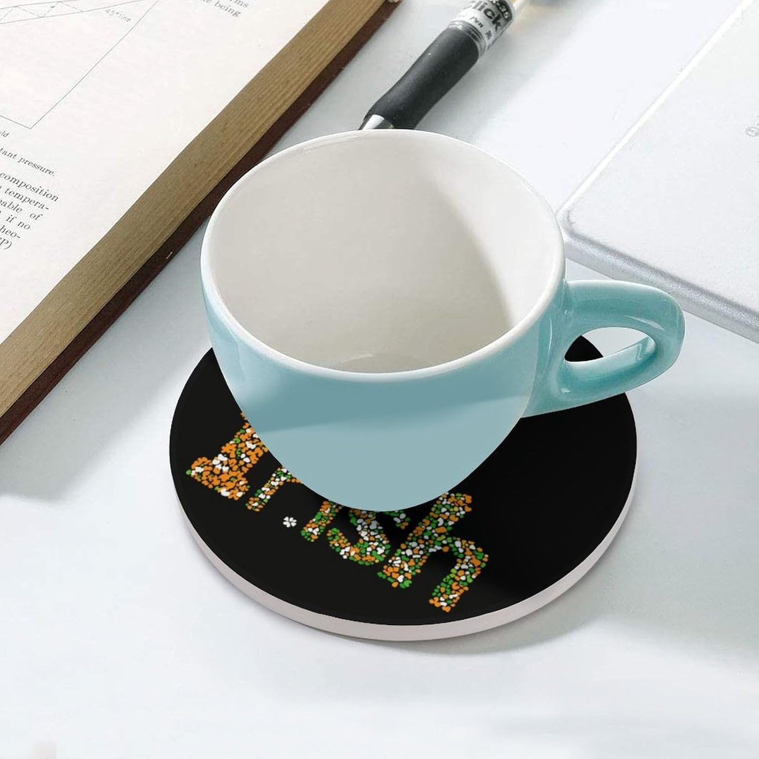 Cute Printed Round Drinks Absorbent Ceramic Coaster with Cork Base Suitable for Kinds of Mugs, Cups, Prevent Tabletop Wear And Scratches, and is Easy to Clean