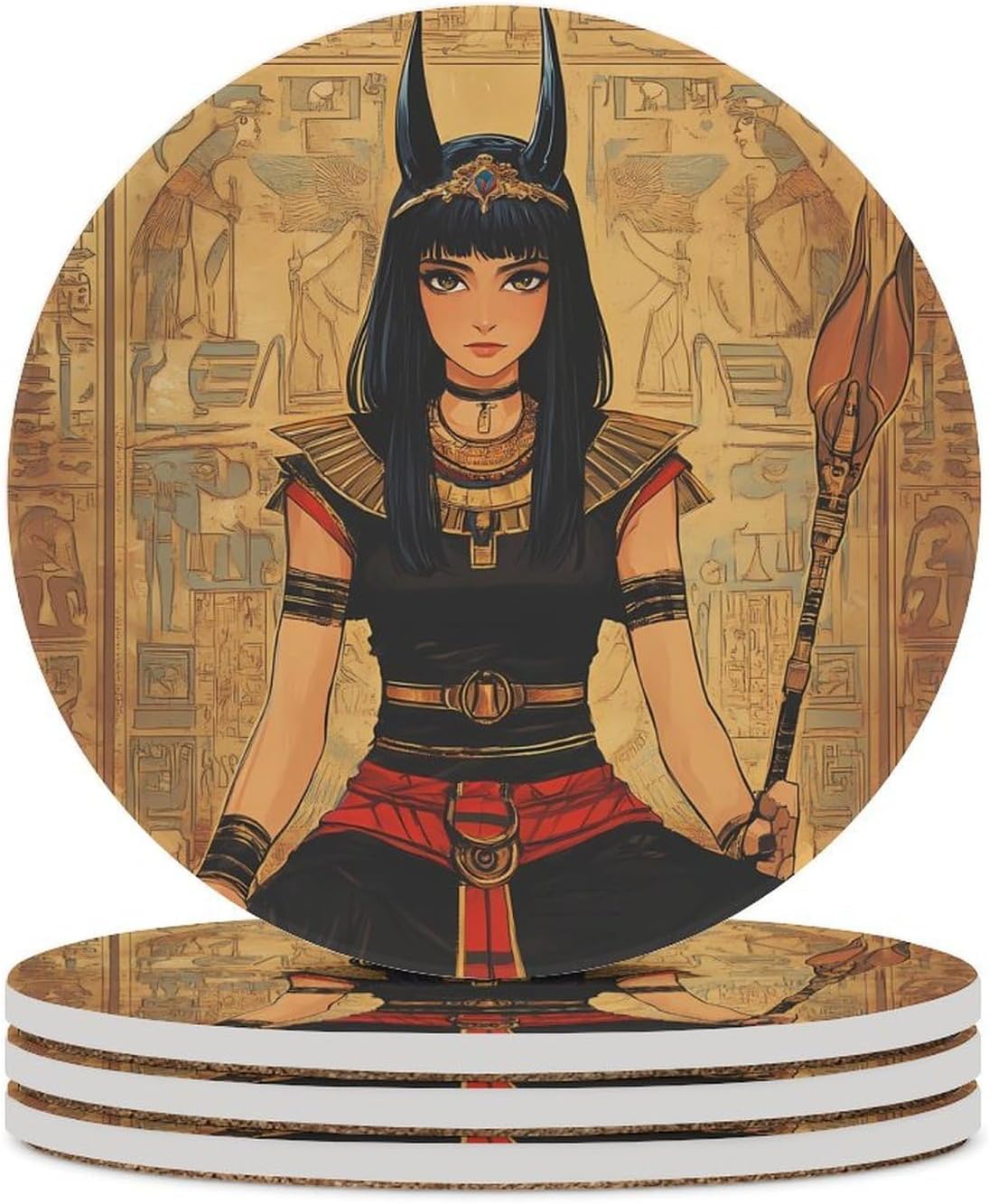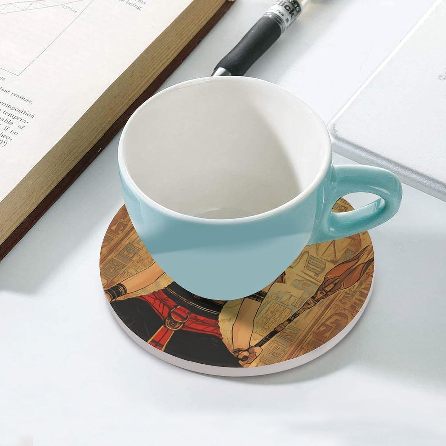 Cute Printed Round Drinks Absorbent Ceramic Coaster with Cork Base Suitable for Kinds of Mugs, Cups, Prevent Tabletop Wear And Scratches, and is Easy to Clean
