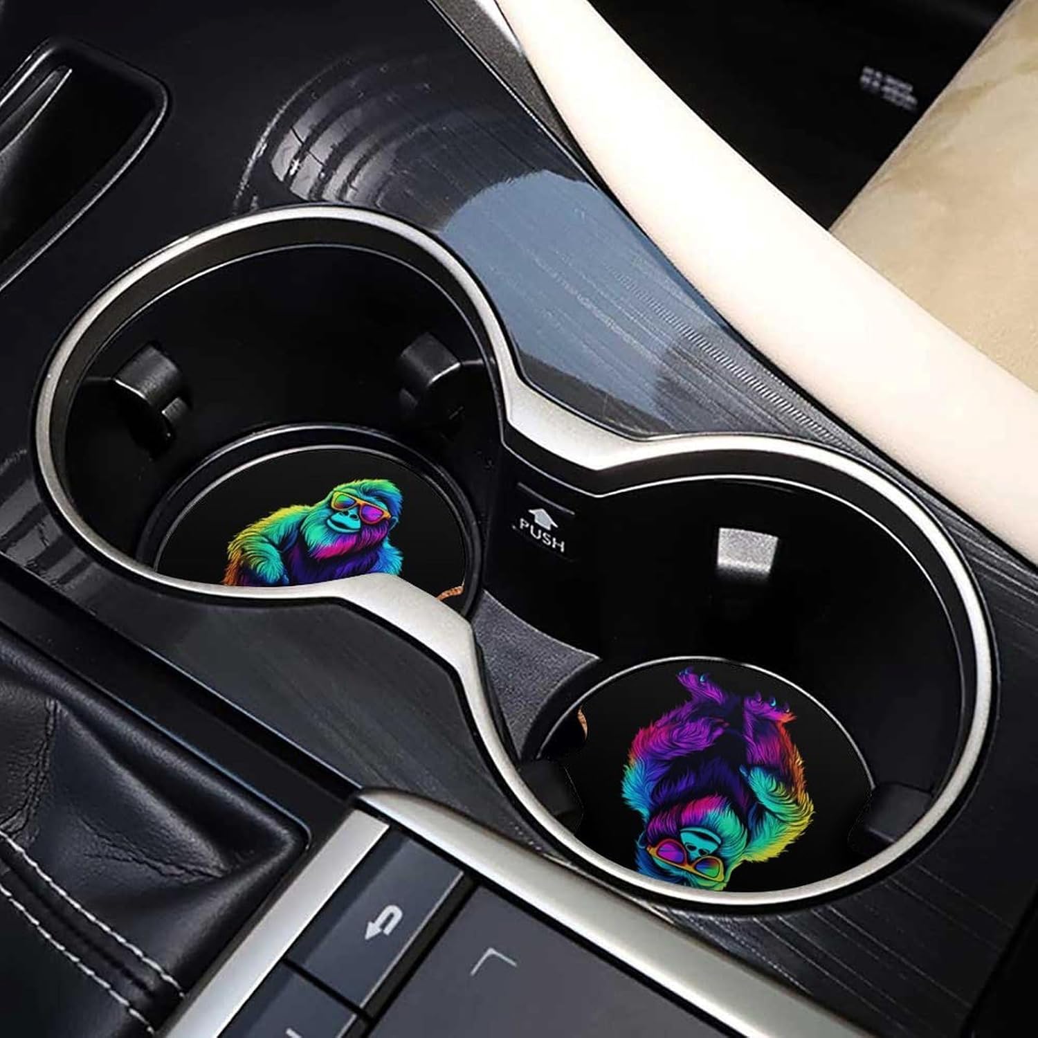 car coasters,coasters set of 6,coasters set of 4,car cup coasters,cup holder coasters for car Round Wood Car Cup Holder Coaster 2.56 Inches Cute Absorbent for Drinks Coaster Auto Interior Decorative Accessories with Funny Pattern Design