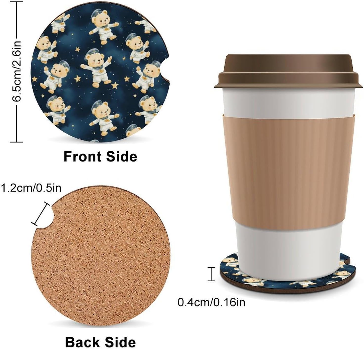 car coasters,coasters set of 6,coasters set of 4,car cup coasters,cup holder coasters for car Round Wood Car Cup Holder Coaster 2.56 Inches Cute Absorbent for Drinks Coaster Auto Interior Decorative Accessories with Funny Pattern Design