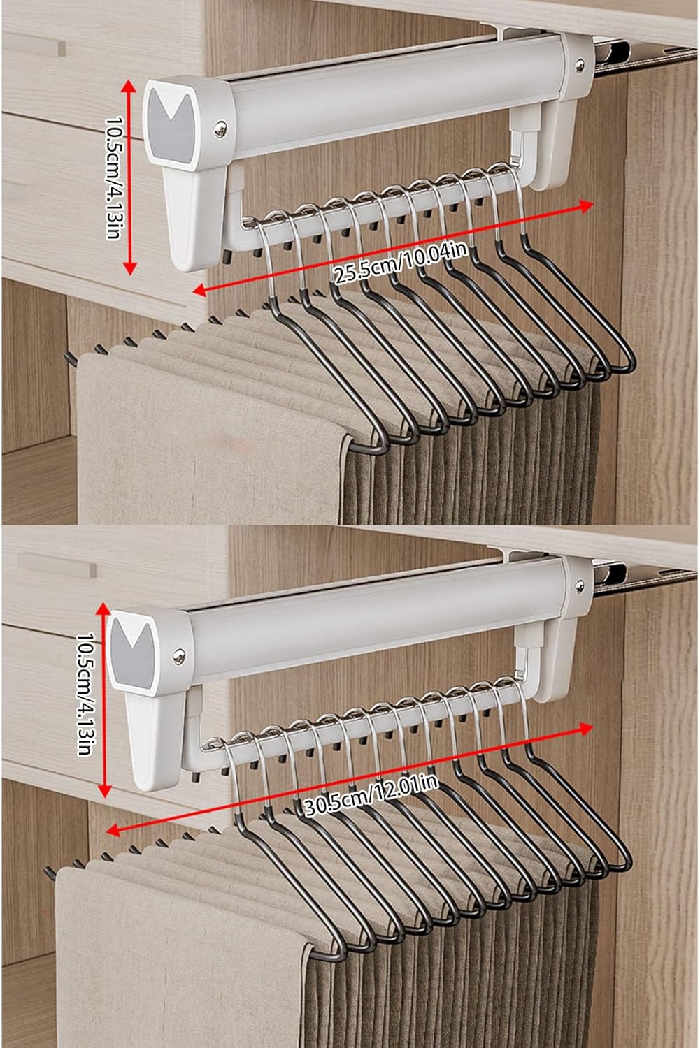 Space Efficient Sturdy Aluminum Alloy Hanging Rails with Adjustable Designs for Wardrobes and Closet OrganizationFeatures:Maximizes your Wardrobes space with our Pull Out Clothes Storage Rod, featuring adjustable and foldable designs that ensures easy access to your garments while maintaining tidying closet.Craft from aluminum alloy, this hanging Rails adapts to various Wardrobes size with its extendable feature, making addition to any storage For families look to optimize closet space, particularly beneficial for small apartment dwellers and renters seek efficient organization.For use in bedroom wardrobes, walk in closets, or any storage area where maximizing space is accessory.Enhances your home organization with this space saving Organizers, designs to seamlessly integrate into any decoration styles while providing practical functionality.Specifications:Component: Aluminum AlloyType: As Picture Show, Six Type to ChooseSize: 25.5x10.5cm/10.04x4.13inch, 30.5x10.5cm/12.01x4.13inchPackage Includes:1pc Clothes Storage RodNote:1.Please allow 1-2cm errors due to manual measurement, making sure that you will not mind before order. 2.Due to the differences between different monitors, the picture may not reflect the actual color.