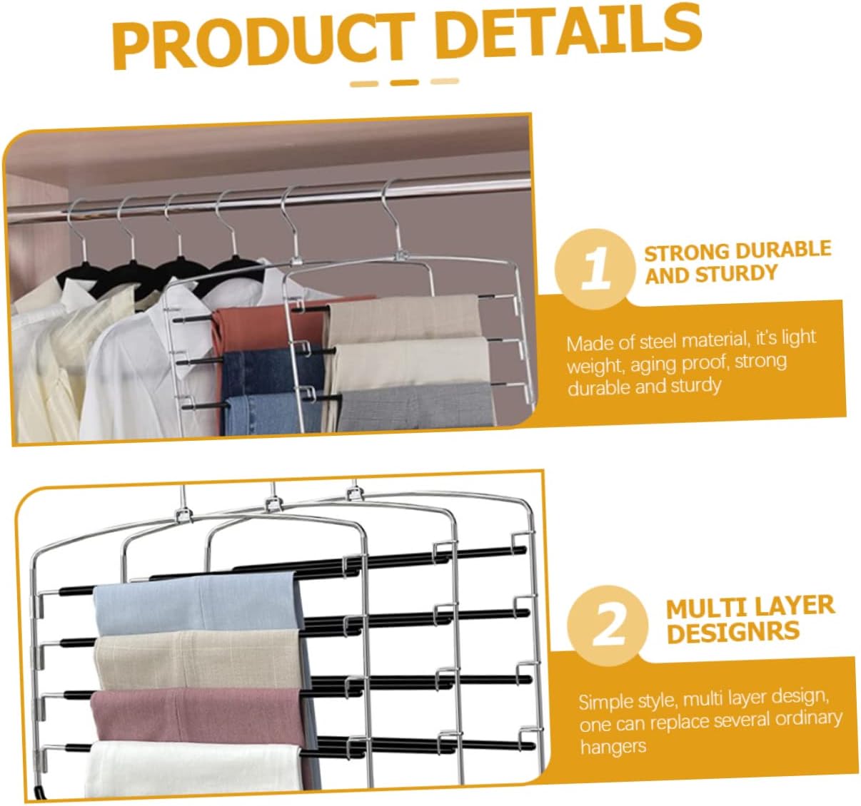 Package List 3 x 5-tier Skirt Hangers Features - Color: hangers space saving. - Size: 38.00X33.50X0.50cm/14.93X13.17X0.20inch space saving trouser hangers. -Product Info:Pants rack - Material: High manganese steel multiple layers jeans hangers. - You can easily save time on dressing as you will be able to find your clothing faster and easier! multi trouser hanger - Manufactured with metal material which is safe and excellent, and strong, for long time use skirt hangers space saving. - Help you maximize your closet space while making it tidy and organized, can be used for home hangers for jeans. - Easy to use anywhere, such as bathroom, bedroom, wardrobe, and will not easily fall off pant hanger. - Fine workmanship and smooth surface and no burrs, safe and reliable, without hurting your hands space saving pants hangers.Goods Descriptionpants organizer You can also save time on dressing as you will be able to find your clothes faster and easier!.pant hanger Very beautiful and practical, it is indispensable household pants hanger.trouser coat hangers Made of metal material, it's strong, and sturdy for hanging jeans, pants and skirt.skirt hangers space saving Simple style, 5-layer design, the skirt hanger is useful and reliable for home use