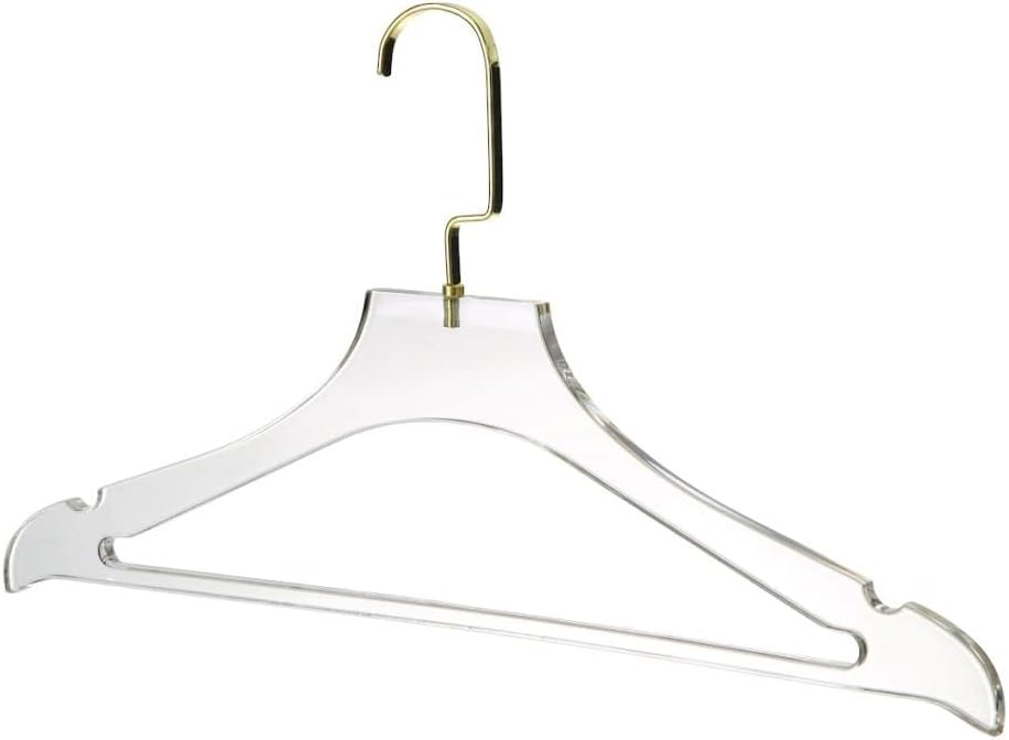 Shop our new line of "ACRYLIC HANGERS" to enhance you quality of livingThe acrylic hanger set is a set of beautiful solid transparent acrylic hangers with gold or silver swivel hook that were designed professionally by our team of designers to create an airy look in confined closet spaces.Luxuries LookBeautifully designed to give your closet a luxurious and airy look. These hangers are very sleek and modern. It is sharp and neat with the modern style that only lucite provides.Quality of HangersOur hangers are strong and sturdy and were built to last you a lifetime. These hangers are Non-slip and have tiny notches on the side to hold your clothes securely. YBM Home is a well known brand that provides high quality products for those who are longing for an upscale living, your welcome to check out our full hanger selection.Join our satisfied customers who are already enjoying these new "ACRYLIC HANGERS" Shop now, you deserve it!