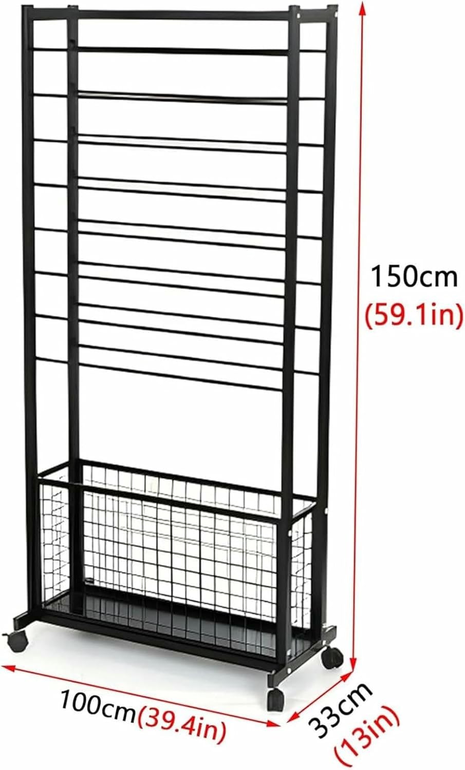✿ Description :→ This multifunctional organizer will keep your checkroom organized and beautiful, and can store your scarves, belts, shawls, ribbons, wrapping paper, etc.✿ Specifications :→ Material : Metal Iron→ Color : Black, White→ Base Bracket Width: 33cm/13in→ Total Height: 150cm/59.1in→ Crossbar Length: 80cm/31.5in, 100cm/39.4in✿ Feature :→ High-quality iron frame, strong and durable, high load capacity.→ Multi-layer storage, increase exposure, effective and rational use of space.→ Small footprint to avoid clutter. Not only save space, but also can be used as wall decoration.→ As a gift to friends and family.→ Suitable for: Clothing Store, Closet, Bedroom, Retail Stores, Flower Shop, Gift Shop, etc.→ Easy to clean : Wipe with wet cloth to remove dirt.✿ Package Include :→ 1 x Scarf Rack (Not include decorative items such as scarves.)【After-sales Service】If you have any questions about our products or orders, please contact us by email, and we will be happy to assist you and respond to you within 24 hours.