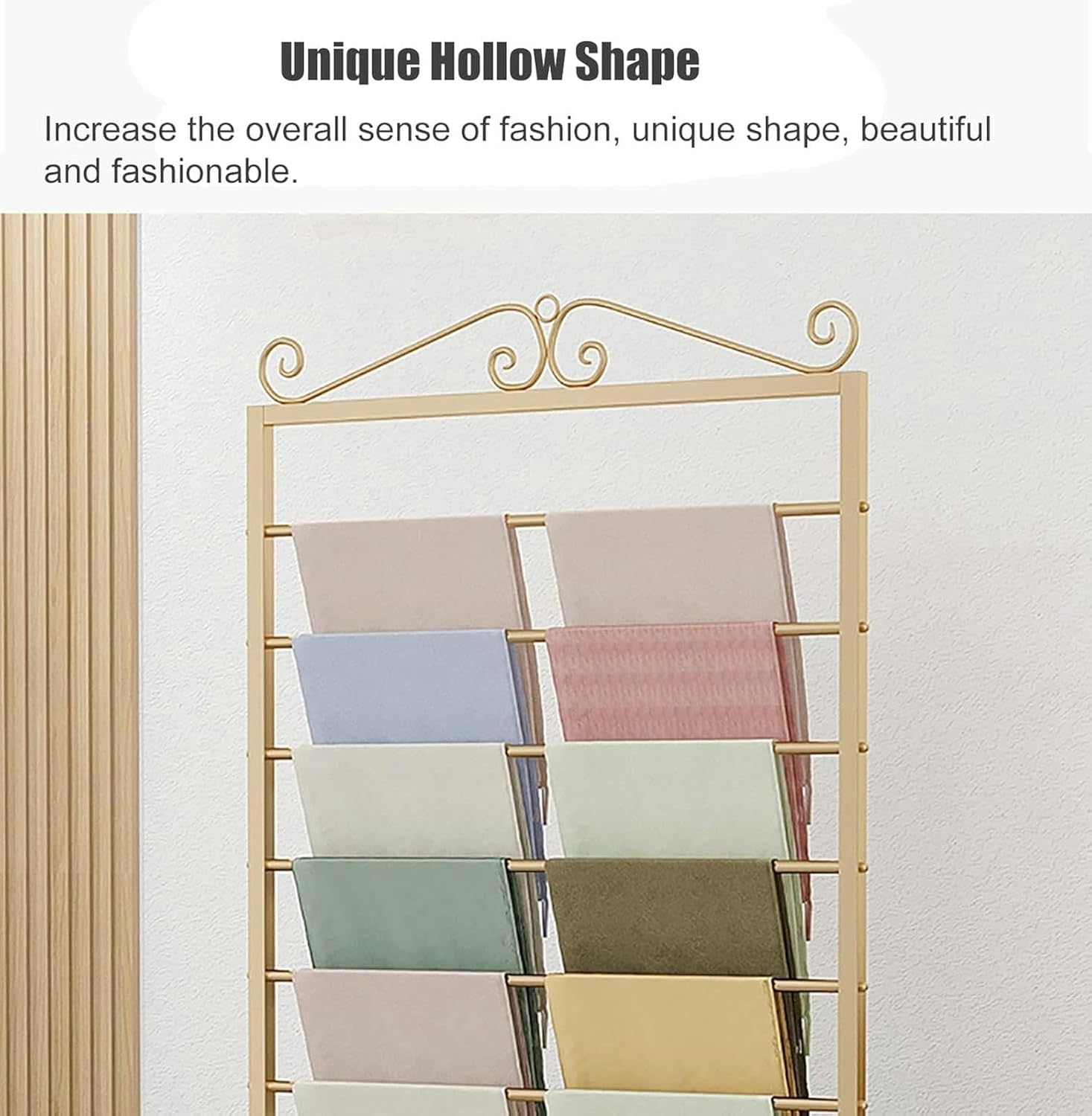 Description: This multifunction rack is an excellent choice for home, store for all types of items! A metal finish gives the rack a polished look while durable construction ensures that you won't have to deal with a rack that won't last.Specifications: Material: Metal Steel Color: Gold , Black , White Style; Modern Size: Tall: 175cm/68.9in; Width: 40cm/15.7in; Length: 45cm/17.7in; 70cm/27.5in; 90cm/35.4in Multi-Purpose: Suitable for scarf, silk scarf, belts, pants, etc Scenes: Home, clothing store, apartments, hotels, closets, etcFeatures: Heavy weighted base for stability. The scarf rack organizer is made of the strong steel with a durable rust-resistant finish. All tools included. Follow the step by step instruction to assemble effortlessly. universal standing rack fits along a wall, in a corner, or anywhere you need smart organization.Package Includes: 1 x Scarf RackNote: There may be an error of 1-3 cm due to manual measurement. There may be chromatic aberration due to the difference between the recording lamp and the display. Please refer to the actual product.