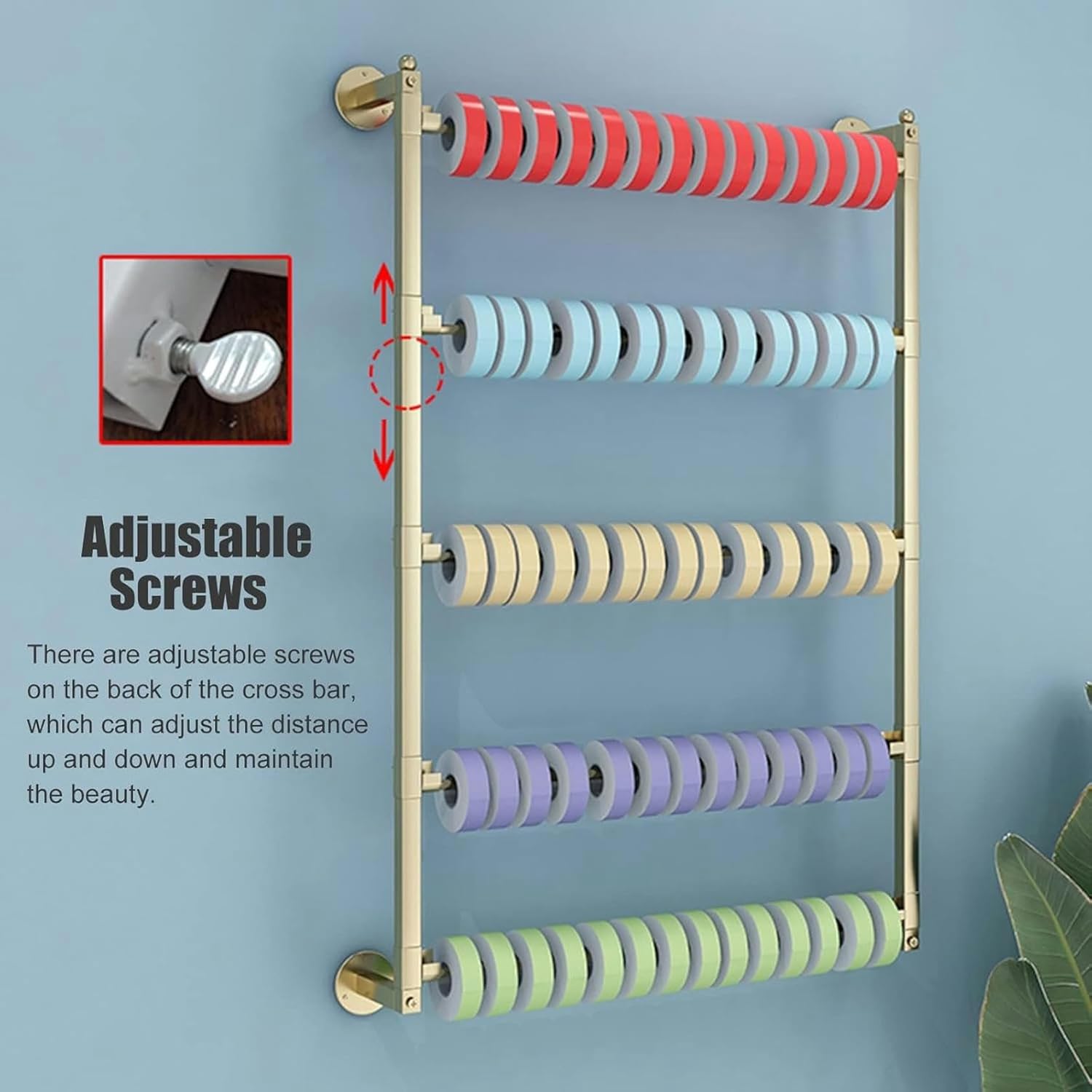 ●Description:This multifunction rack is an excellent choice for home, store for all types of items! A metal finish gives the rack a polished look while durable construction ensures that you won't have to deal with a rack that won't last.●Specifications:Material: Metal SteelColor: Gold , Black, WhiteStyle; Modern Size: Tall: 90cm/35.4in; Length: 60cm/23.6inMulti-Purpose: Suitable for scarf, silk scarf, belts, pants, ribbon, gift wrapping paper, thread, and newspaper storage, etc.Scenes: Home, clothing store, apartments, hotels, craft room, sewing room, studio, flower shop, etc.●Features:5 tier vinyl roll holder storage rack.Each iron pole supports rolls up to 40 lbs. (Removable crossbar).Made of the strong steel with a durable rust-resistant finish.All tools included. Follow the step by step instruction to assemble effortlessly.● Package Includes:1 x Scarf Rack(Not include other items on the pictures)● Note:There may be an error of 1-3 cm due to manual measurement.There may be chromatic aberration due to the difference between the recording lamp and the display. Please refer to the actual product.