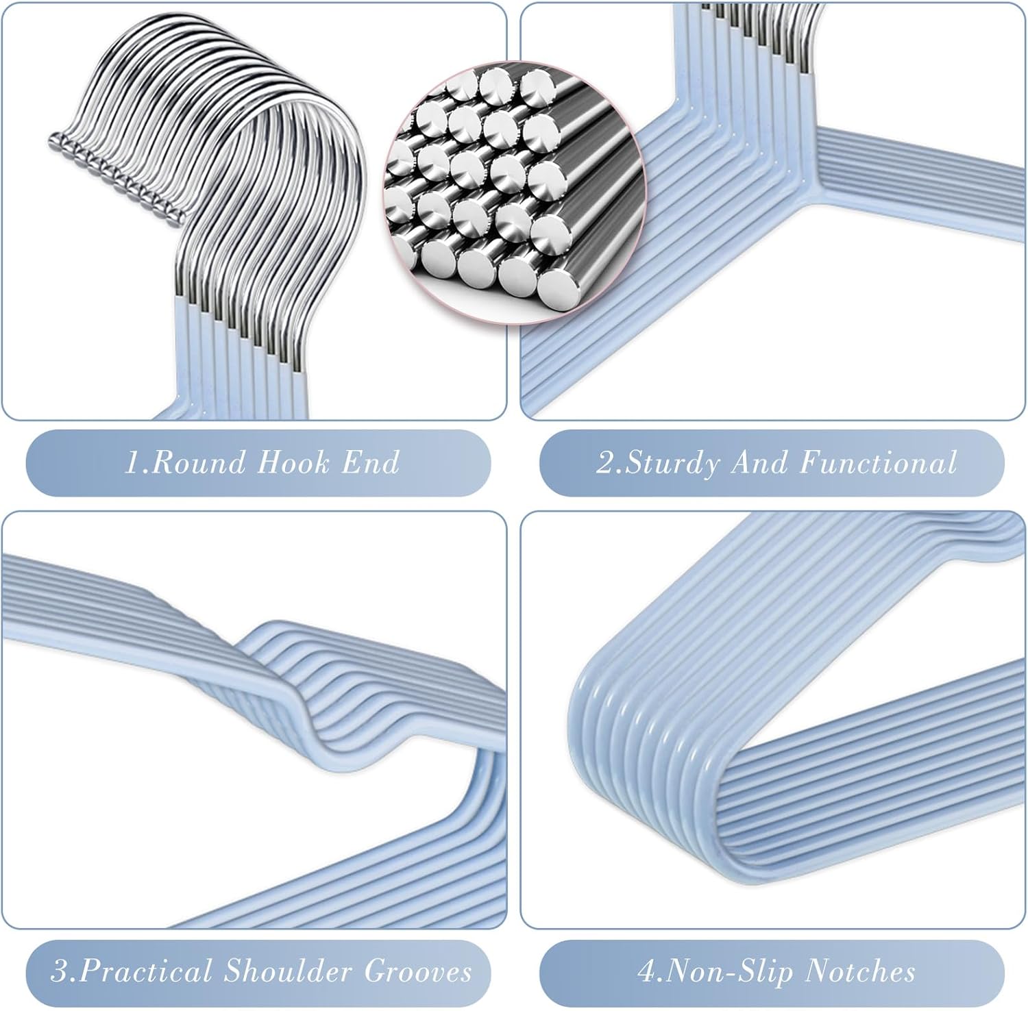 Features: These metal clothes hangers can be not only suitable for children's clothes and adult's clothes, but also can be applied in many places, such as home, office, hotel, yard, patio, other outdoor and indoor use, simple but useful. The wire clothes hanger has ample quantities and assorted colors for you to use or replace in daily life, and non slip plastic coating and notched design will bring you a comfortable and satisfactory use experience. Specifications: Material: metal wire, plastic Color: light blue Size: about 15.7 x 7.5 inches/ 40 x 19.2 cm in length and width Package includes: 100 x Metal wire hangers Notes: Manual measurement, please allow slight errors on size. The color may exist a slight difference due to different screen displays.