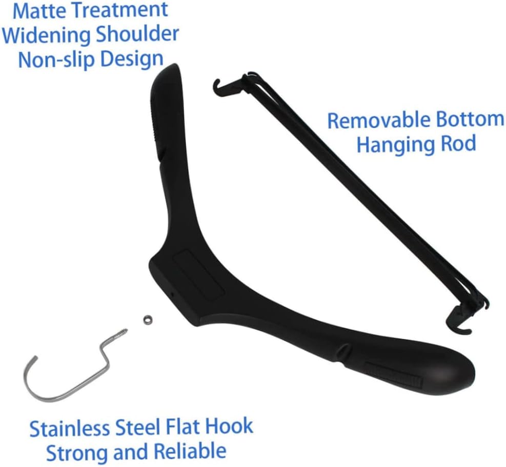Description: Introducing our practical and versatile Coat Hangers! This pack includes 15 plastic suit hangers designed to keep your clothes neat, organized, and wrinkle-free. These hangers are the perfect addition to your closet, convenience and functionality. Whether you're organizing your business attire, casual wear, or even delicate dresses, our Coat Hangers with Swivel Hooks are up to the task. Keep your wardrobe organized, your clothes in pristine condition, and enjoy the convenience of these reliable hangers. Upgrade your closet today with our 15-piece set of Plastic Suit Hangers! Features:. Coat Hangers. -Color: black. -Material: Plastic. -Size: about 44x24.5 cm/17.32x9.65 inch. 5 cm/1.97 inch. Note: Manual measurement, please allow slight errors on size. The colors may exist slight difference due to different screens. Package Including 15 * Suit Hangers