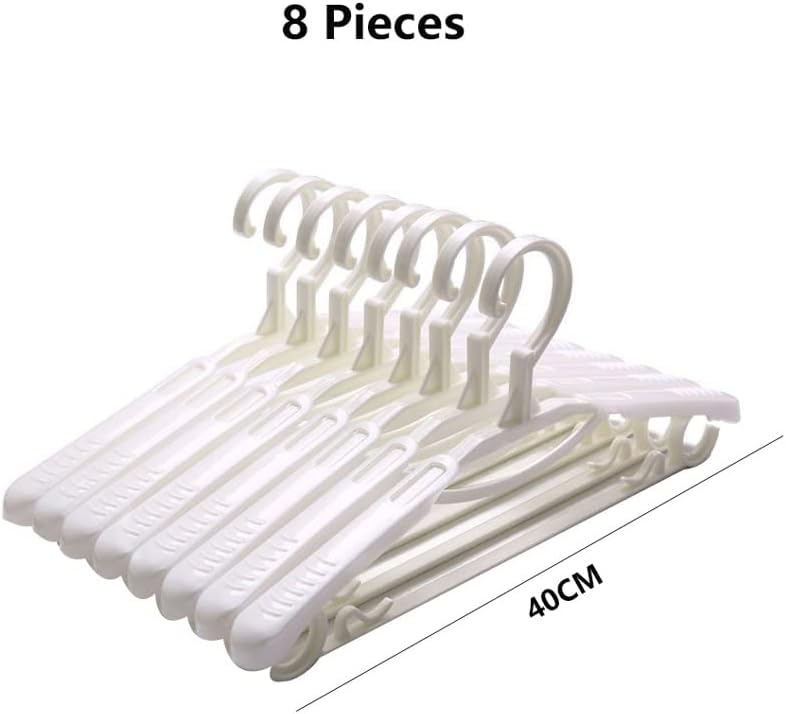 Name: hanger material: plastic Size: 40CM Quantity: 8 pieces This product contains only hangers Design: Non-slip technology on the shoulders and pant bar; grips and holds delicate clothing securely.