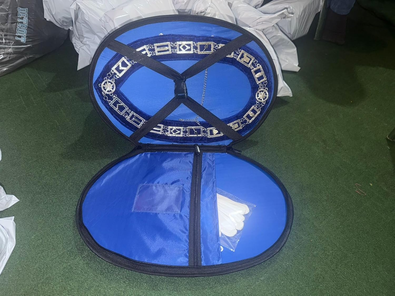 Masonic Blue Lodge Master Mason Chain Collar Case With Square & Compass Embroidered Logo Freemason Carrying Soft Black Leather Case
