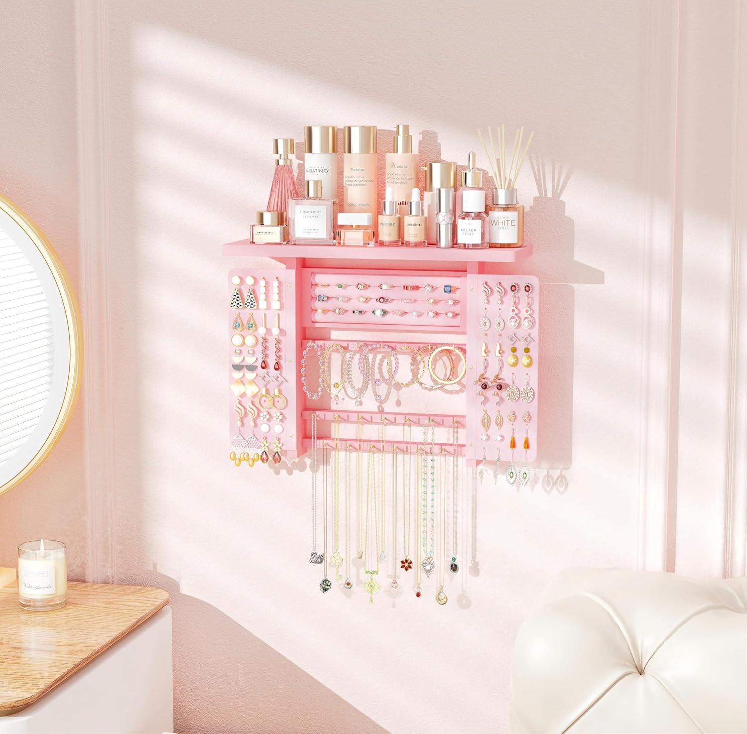 Jewelry Organizer Hanging Wall Mounted Jewelry Holder, 5-in-1 Large Capacity Necklace Organizer Wall