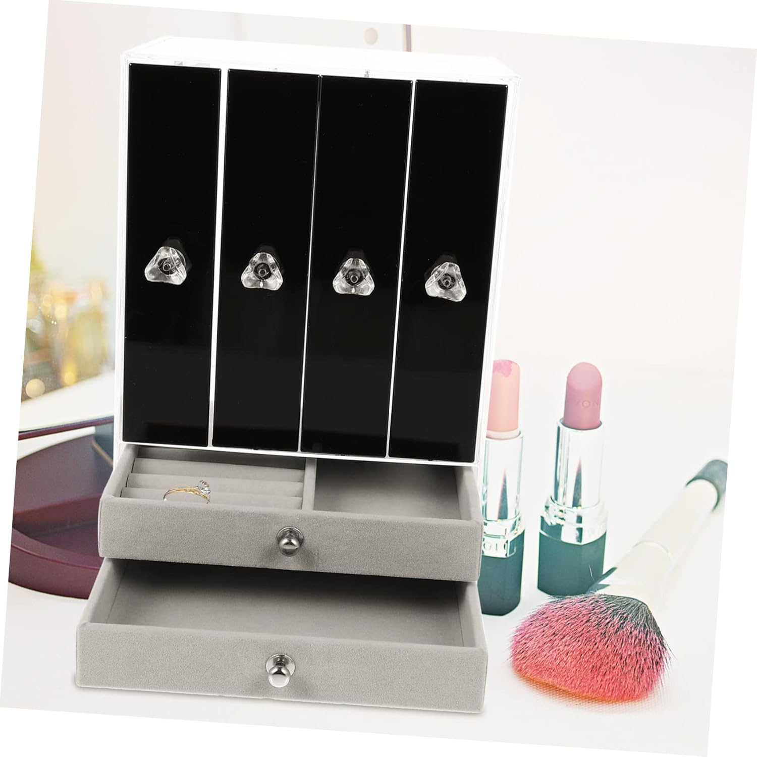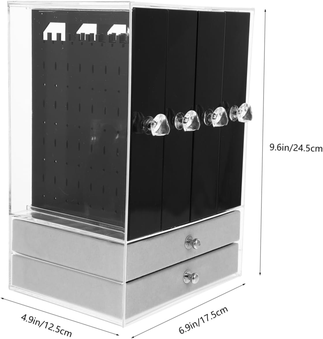 Package List 1 x Set of Storage holder Features - Color: Black Earring Storage Box. - Size: 24.50X17.50X12.50cm/9.63X6.88X4.91inch Jewelry Display Holder. - Material: Plastic Jewelry Displaying Rack. - Suitable for home personal jewelry table storage, jewelry store jewelry display Bracelet Stand. - workmanship, no burrs, not easy to fade or deform Jewelry Case. - You can organize and display your jewelries elegantly Jewelry Storage Holder. - Made of materials which are durable and sturdy Bracelet Storage Rack. - Applicable for jewelry stores, clothing stores, boutiques and more Necklace Stand.Goods InformationDressing Table Organizer It is specially designed to place your favorite earrings, bracelets, .Necklace Display Rack No longer need to find your jewelry everywhere.Earring Rack This is a jewelry display rack for storing and displaying jewelries.Necklace Holder It is very beautiful and charming, which can attract people attention easily