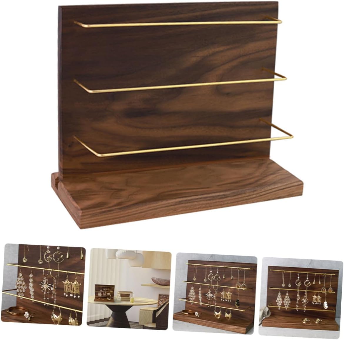 Package List 1 x Storage Shelf Features -Size: About 30.00X24.50X12.00cm/11.79X9.63X4 Jewelry Hanging Rack. -Material: Walnut Hanging Jewelry Display -Color: As Shown Jewelry Organizer - Suitable for displaying jewelry in retail stores or in your own home Jewelry Display Rack. - Made of walnut material for long time using wooden coat hanger. - The jewelry storage rack looks simple and elegant in its wood color Display Organizer. - This jewelry organizer is for neatly storing and organizing all of your precious jewelry Storage Container. - Suitable for organizing earring, necklaces, bracelets, and other accessories on your dresser or store counter Showing Rack.Goods DescriptionDisplay Organizer The jewelry stand is made of solid walnut material, with smooth surface, sturdy and .Watch Organizer The jewelry holder provide enough storage space for you to display all your earrings, and keep them tangle- . Earring Stand Hanger for organizing earrings, necklace, and other accessories on your dresser or coumter