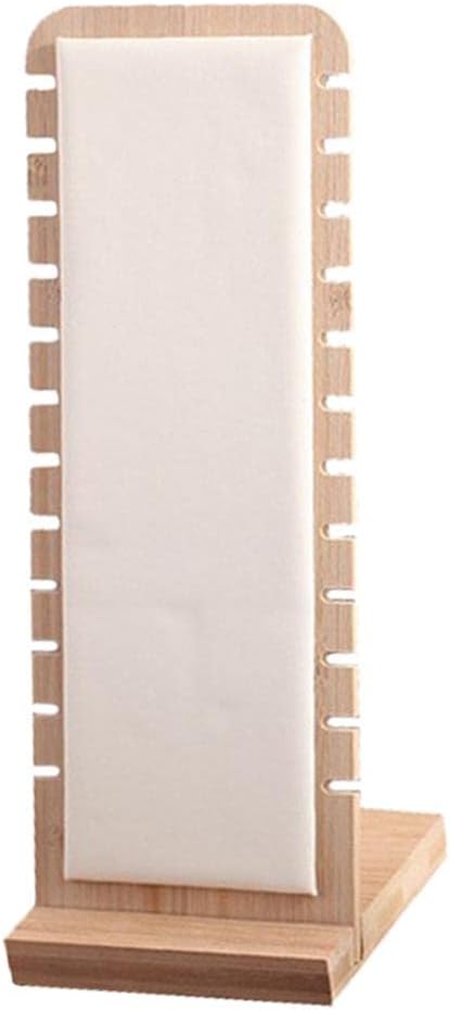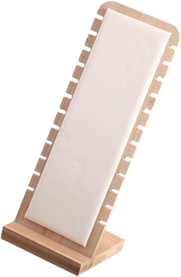 Description: - Made from high grade bamboo, durable and practical. - Simple and elegant design, exquisite leather/suede surface will protect jewelries from being scratched. - Sawtooth shaped holes can necklace, earring rings and other jewelries naturally. - L-shape display board, stable, easy to move and storage. - for craft fair display, household jewelry storage or jewelry store display.Specification: - Material: Bamboo - Size: Approx. 27x10 cm / 10.63x3.94 inch - Color: White / Creamy WhitePackage Includes:2 Pieces Jewelry Display Stand(Pendant Chains in the photo are not included):1.Please allow a slight difference between the size from the above and the actual item due to manual measurement.2.Due to the difference between different monitors,there could be a little color difference acceptable, please kindly .