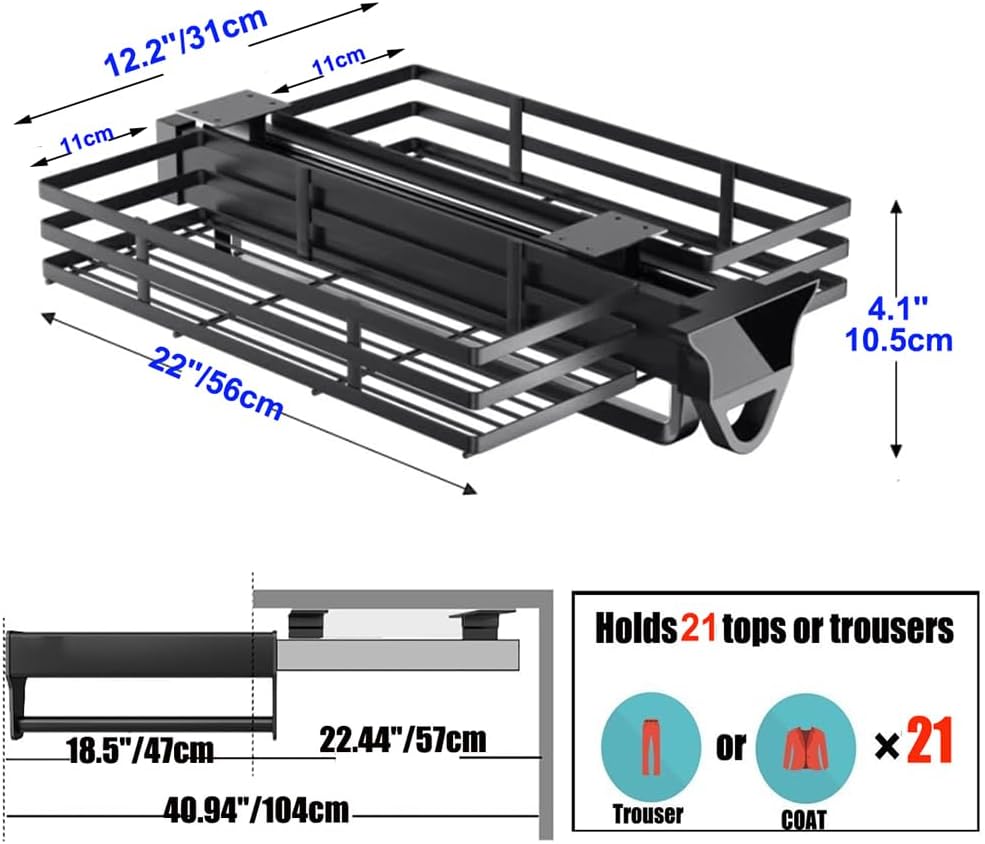 Pull Out Closet Rod with Basket, Closet Clothes Hanger Rail,Wardrobe Clothing Rail Pull Out basket,Closet Organizer Rack for Pants and Coat,Load 77LBS