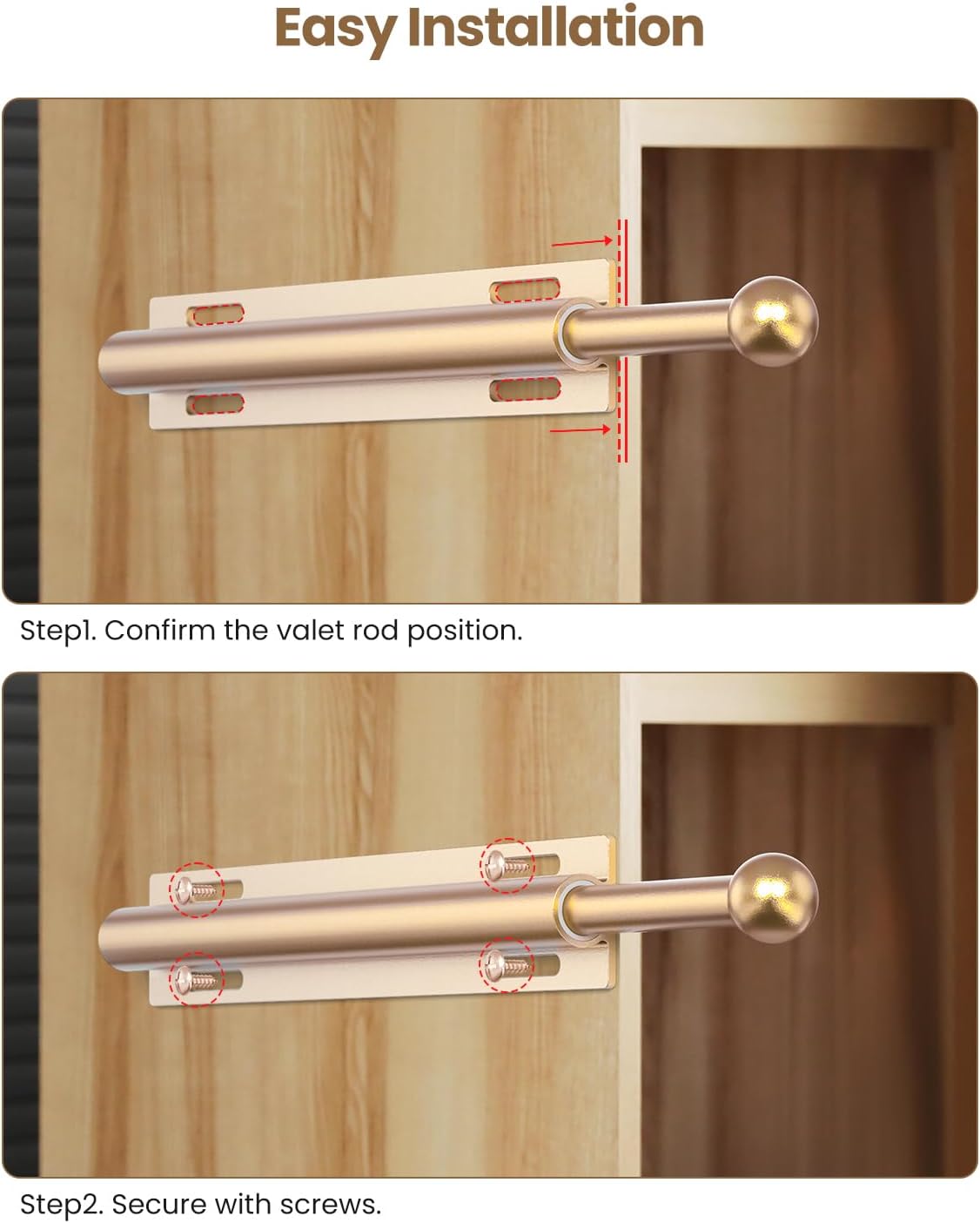 1 Pack 17 to 69 Inches Closet Rod for Hanging Clothes, 1 Pack Gold Valet Rod for Closet Pull Out