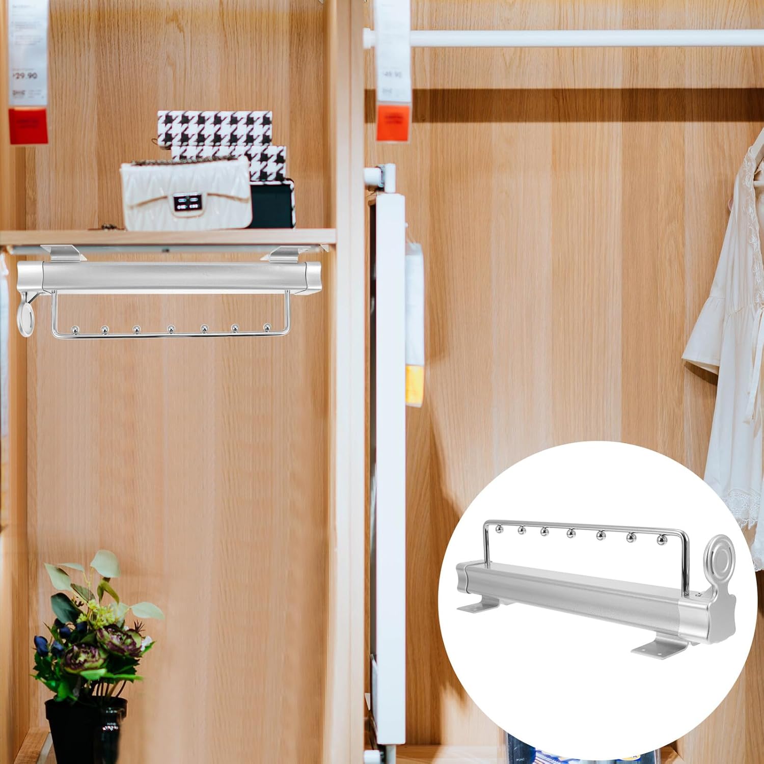 Package Include 1 x Closet Rack 8 x Screws Characteristics -Size: 40.80X12.50X9.00cm/16.03X4.91X3.54inch -Material: Aluminum, Iron -Color: Silver -Product Info:Clothes rod -The design is simple, practical and , stable and practical, deliver a smooth sliding Top Mounted Clothes Organizer. -Perfect for arranging your jeans, trousers, pants, scarfs, shawls, etc. It makes maximum use of the space Closet Organizer. -Made with nice craftsmanship, has a scientific structural design, can be expanded and contracted Clothes Organizer Rack. -Only a few minutes to complete the installation, just screw it into the top of your closet Wardrobe Organizer. -Damping buffer slide rail can make the sliding pants hanger bar pulled out quietly and completely Wardrobe Sliding Rack.Goods InformationCloset Organizer It has a reasonable structure design, which can help you to easily store pants and clothes, and organize your wardrobe.Top Mounted Clothes Rack This simple but practical top mount clothes rack is made of quality materials, with good texture, durability, and .Pull Out Pants Rack This is a simple and practical organizer that can save you more free space