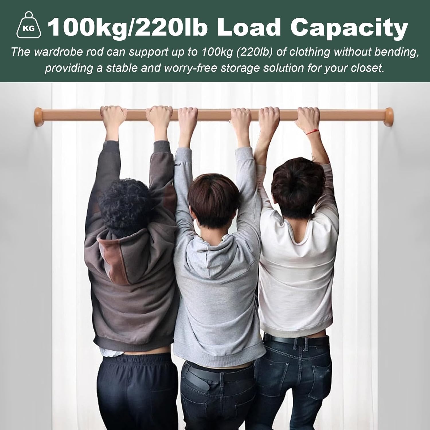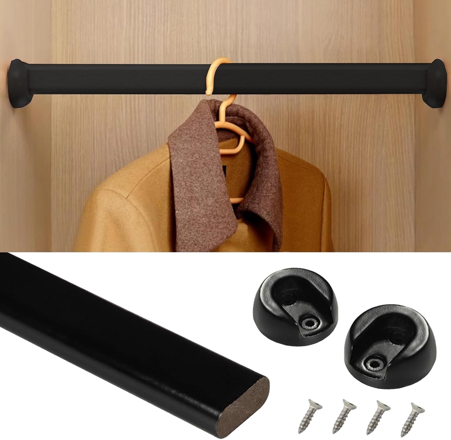Closet Rod Top Mount Wardrobe Bars:Are you tired of dealing with a disorganized closet? Our premium closet rod is designed to help you create a neat and functional space with ease. Made from high-quality beech wood, this sturdy hanger rod ensures that your clothes hang securely without sagging, even under the weight of heavy garments. Transform your closet into a well-organized haven where everything is easily accessible. With a length adjustable from 40 to 160 cm (15 3/4 to 63 inches), this versatile clothes rail fits a variety of wardrobe sizes, making it perfect for any home. Available in elegant wooden, black, and white finishes, it seamlessly complements your decor while adding a touch of sophistication. Each package includes everything you need for a hassle-free installation: one closet rod, two flanges, and four screws. Whether you are a DIY novice or an experienced installer, you’ll appreciate the complete accessory set that simplifies the setup process. Key features of our closet rod include: - A strong load capacity that supports even your heaviest winter clothing without bending. - Meticulously sanded surfaces that provide a smooth finish, allowing clothes to glide on and off effortlessly. - Dual functionality that allows it to serve as both a clothes hanger rod and a curtain rod, catering to diverse home needs. Please note, slight variations in handmade measurements are normal, and actual colors may vary slightly due to screen displays. For the best fit, accurately measure your wardrobe’s internal width before purchasing. Elevate your storage solutions and enjoy a clutter-free lifestyle with our reliable closet rod today!