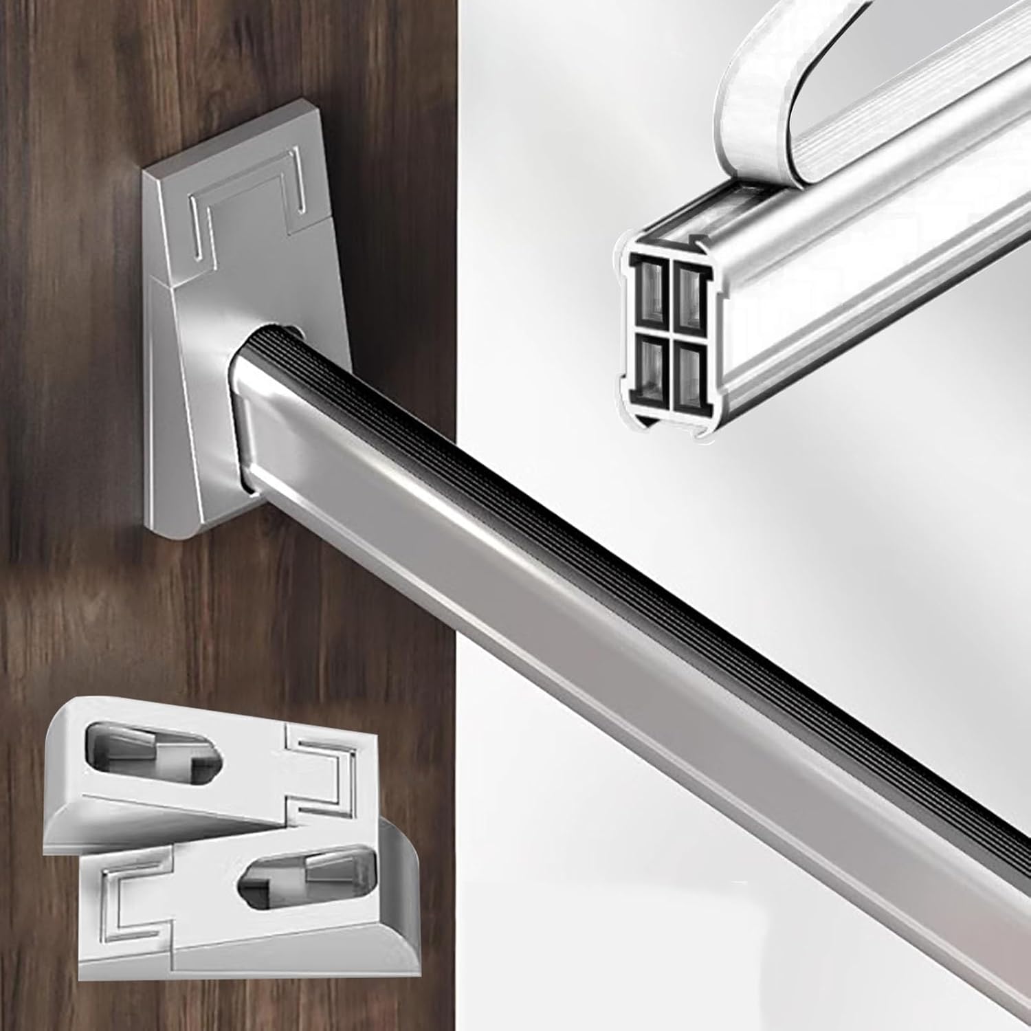 Closet Rod Top Mount Wardrobe Bars:Transform your space with our versatile Closet Rod, designed to declutter your room and enhance organization. Proper storage is essential for a tidy environment, and our closet rod is the perfect solution to achieve that clean, organized look. **Package Includes:** - 1 × Closet Rod - 2 × Flange Sockets - Additional Accessories **Specifications:** - Material: Durable aluminum alloy - Color Options: Elegant Gold, Sleek Silver, Classic Black - Adjustable Length: 30 to 200 cm (approximately 11 3/4" to 78 3/4") - Rod Thickness: 2mm (1/8") - Customizable and Cuttable to Fit Your Space **Key Features:** - **Customizable Length:** Easily adjust the rod to your preferred size for any closet or space. - **Stylish Design:** The high-grade frosted finish seamlessly matches various interior styles. - **Secure Installation:** Comes with flange and screws to ensure stability and prevent falling. - **Maximize Space:** Ideal for small closets, offering extra hanging space without compromising style. - **Versatile Use:** Perfect for entryways, hallways, or apartments, accommodating your clothing and accessories. - **Robust and Reliable:** Engineered to hold a substantial amount of clothing while maintaining stability. **Important Notes:** - Manual measurements may have slight 1-2 mm variations; please refer to the actual product. - Color may vary slightly due to lighting and monitor settings; always refer to the product received. **Customer Support:** If you have any questions or need assistance with our products, please don't hesitate to reach out. We are here to help you achieve the organized space you desire.