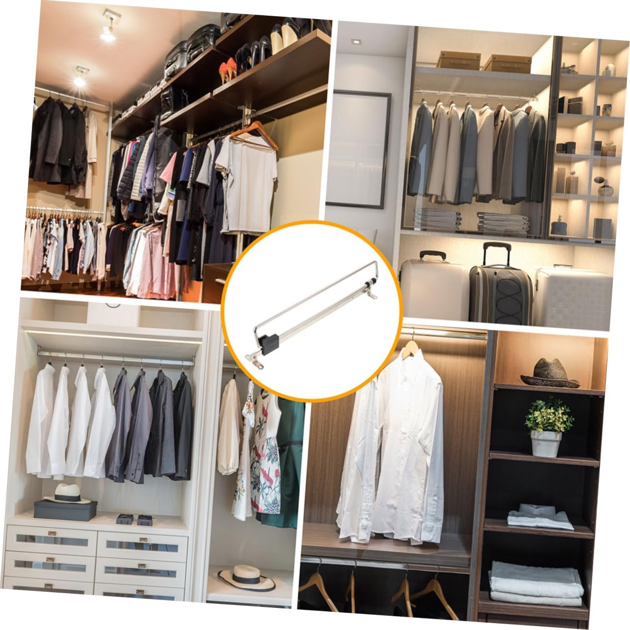 Package Include 5 x Telescopic Clothes Rails Characteristics - Easy Installation: The closet rod is installed on the tops of the wardrobe, which is easy to install and space wardrobe parts -Stretchable distance: 245 mm Cabinet Hanging Rod - Widely Applicable: This rod can be used in your home, bedroom, corridor, closet, laundry entrance, can be a match with your home's various style Wardrobe Hanger Bar -Color:Silver closet Bar -Size:29.50X5.50X4.00cm/11.59X2.16X1.57in clothing hanger telescopic rod - Practical Design: Specially designed for fixing into your closet or wardrobe to helping hanging the clothes closet rod -Material:Iron, plastic closet accessory - A must have wardrobe: hanging your clothes keeps them tidy and you an overview closet hanging rod - Smooth surface: without burrs, closet clothes rail will not damage your clothes hanging Rod for closetGoods DescriptionWardrobe Hanger Bar This is a practical closet pulls out rod, made of iron, plastic material, can be used long term.clothing hanger telescopic rod This is a simple and practical organizer that you more space.Wardrobe Clothes Rail It has a reasonable structure design, which can help you to easily store clothes, and organize your wardrobe