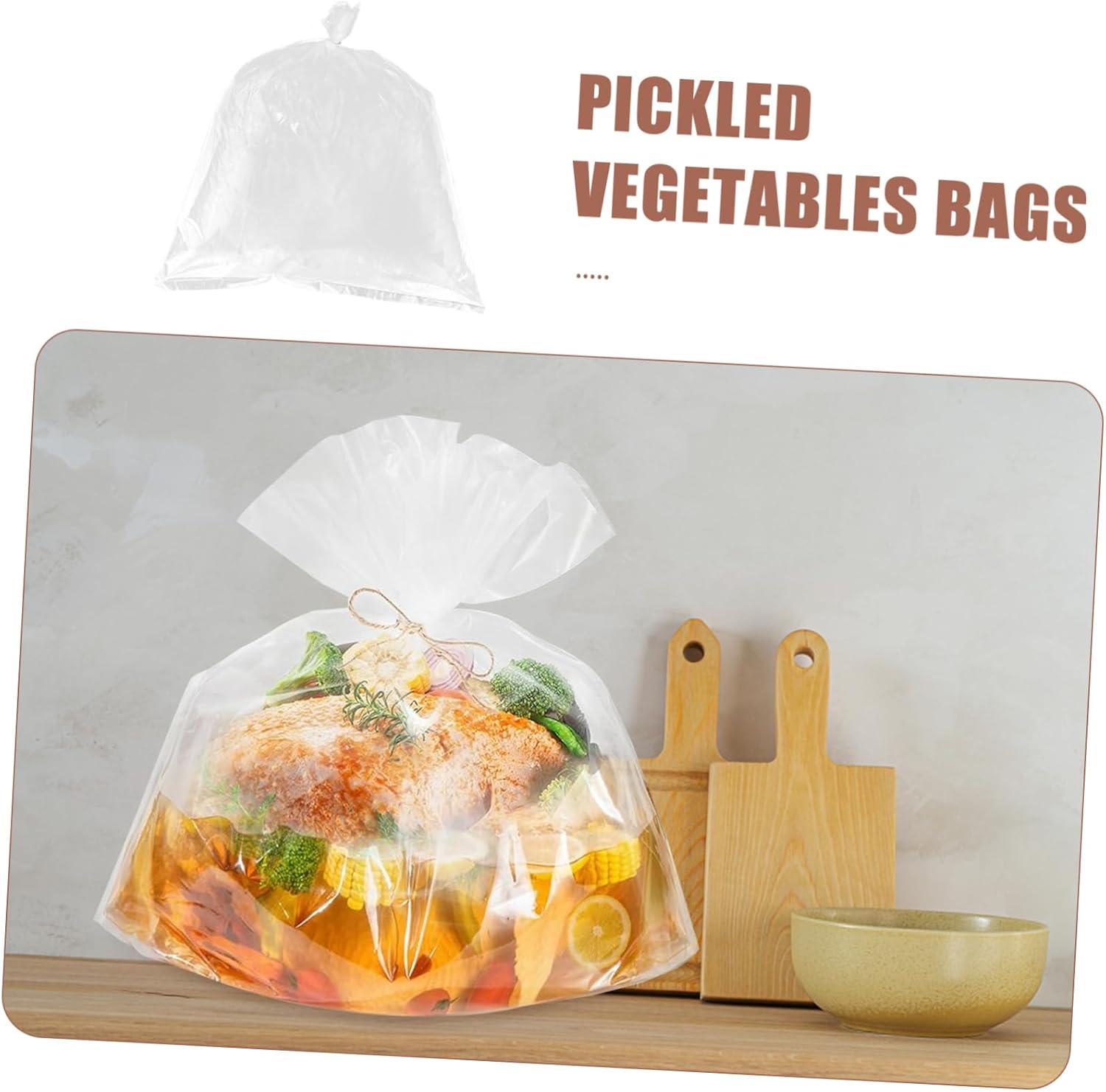 Package Include brining bags Characteristics -Size:60.00X50.00X0.10cm/23.58X19.65X0.04in Brine Bag for Turkey -Color:Transparent Large Capacity Brine Bags -Note: these bags are reusable Brining Bags. -Material:Plastic Meat Brining Bag -There are sufficient quantity of brining bags that can meet your different kinds of brining or storage needs Meat Brining Bags. -Also, these storage bags can be used to store your plush animals, pillow, cushion, and so on Brine Bags. -The transparent texture of the brine bags allows you to easily know the condition of the food in it Vegetable Brining Bags. -These large capacity brine bags are widely used for brining turkey, beef, vegetables and other food Brining Bags for Chicken. -Made of material, these brine bags are strong and , can be reused, and are tear- Chicken Brining Bags.Goods InformationLarge Reusable Plastic Bags And with a large capacity, you can brine large quantities of food at once, making it for commercial use.Chicken Brining Bags This bag is not only for pickling sour cabbage and other vegetables, but it can also be used for brining a variety of other foods.Reusable Plastic Food Bags Whether you're pickling meat, fish, or other of vegetables, this bag is the tool for the job