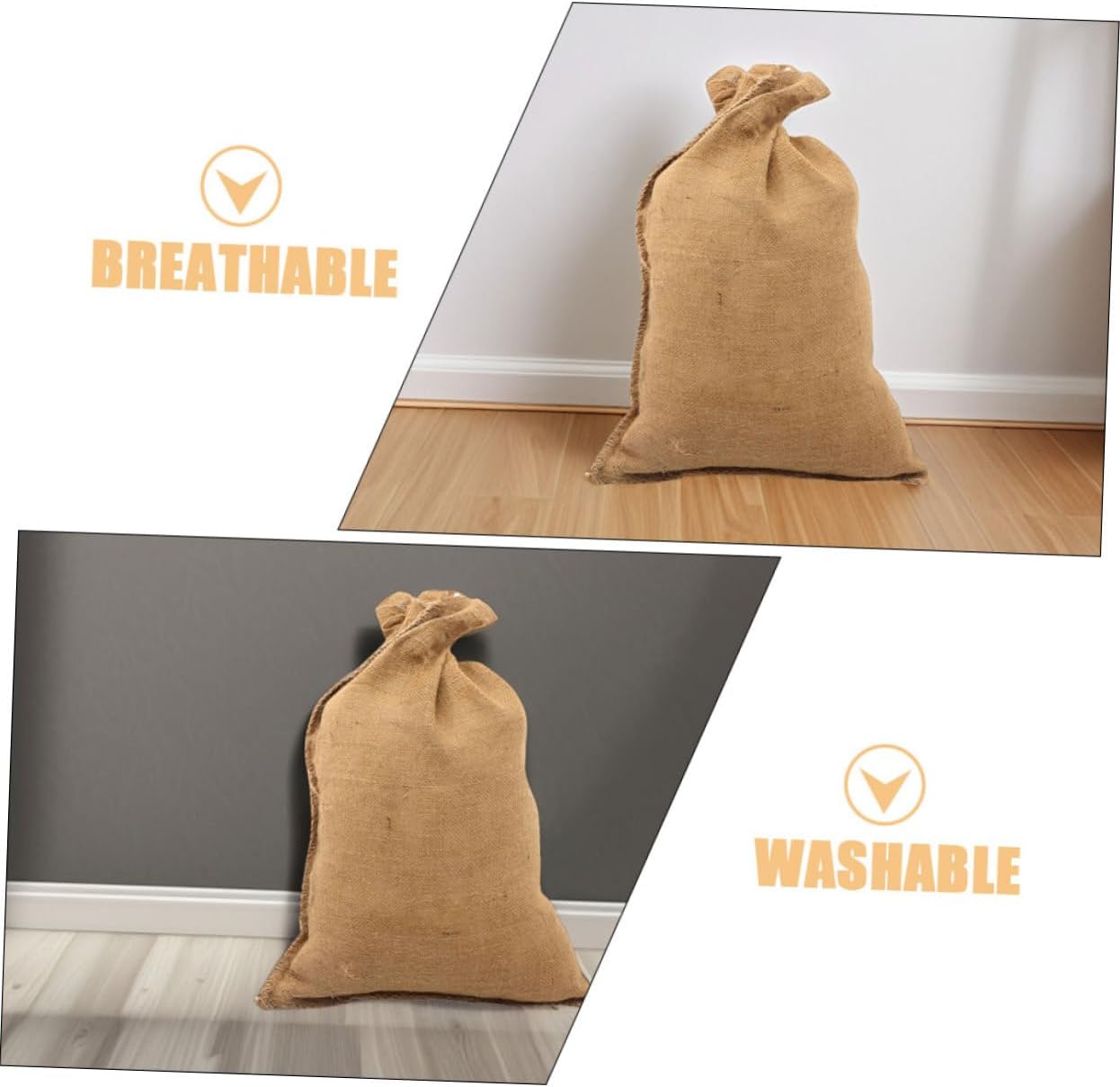 DescriptionThese natural burlap storage bags are great for organizing your home or garden. Use them to store vegetables, gardening supplies, or even as sandbags for flood control. The sturdy construction and reusable material make these bags a and sustainable choice for a wide range of applications.Features-Color:Brown-Material:Linen-Size:60.00X40.00X0.10cm/23.58X15.72X0.04in-Breathable and freshkeeping: the breathable burlap material helps keep vegetables like potatoes and onions fresh by allowing air circulation, preventing spoilage-reusability: these bags are designed to be washed and reused multiple times, making them a sustainable choice for food storage-Generous storage capacity: the large size of these bags offers plenty of room for storing a variety of vegetables and other agricultural products-Heavyduty and : made to be strong and , these bags can handle heavy loads without tearing, ensuring longlasting use-Versatile and : great for a range of uses, these bags can be used as sandbags for flood control, tent weights, or for organizing household items