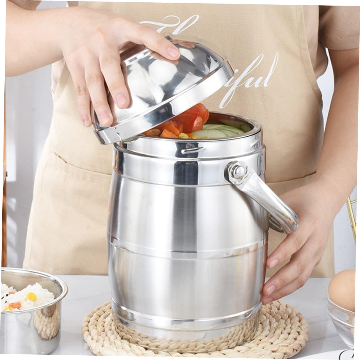 Package Include 1 x Insulated Bucket 1 x Rice Plate 1 x Dish Plate 1 x Lid Features -Color: Silver thermal food container - Size: 28.00X14.50X14.50cm/11.00X5.70X5.70in insulated lunch container -Product Info:Insulated lunch box -Material: Stainless steel hot food lunch container - Good airtightness that soup and oatmeal won't spill out lunch warmer portable for work. - It features good heat insulation to keep the lunch warm for a long time hot lunch container. - Suitable to use at school, office or during traveling, keep food warm for you thermal lunch containers. - Proper size and portable handle design, convenient for you to carry insulated food jar. - Made of stainless steel material, and heated lunch boxes for adults.Goods Descriptionadult lunchable containers Large capacity with effective fresh-keeping function, very practical.heated lunch boxes for adults Made of food grade stainless steel, the lunch box is and safe to use.insulated food jar With good leakproof performance and handle, it is convenient to carry anywhere you want