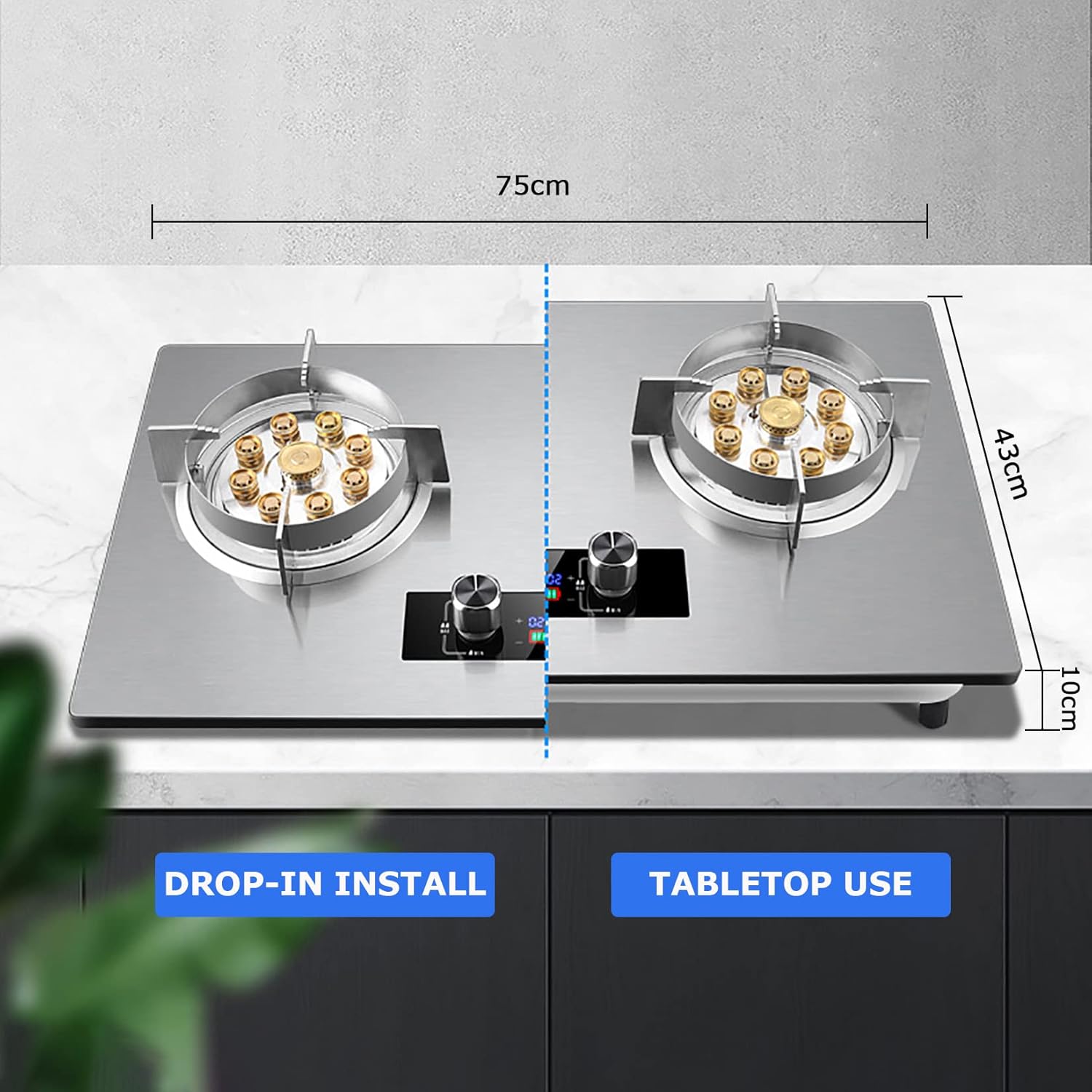 FEATURES 1.Stainless steel Gas stove, Explosion-proof,sturdy, high temperature resistance,easy to clean. 2.New stove frame, the woks and pans can be placed steadily without slipping 3.Knob control, different ingredients correspond to different heat, easy to control the key to delicious 4.non-slip rubber legs to provide the burner with stability and make sure your cooking stays in place PACKAGE INCLUDING 1 x Gas Cooktop,1 x Operation Instruction NOTES 1.Natural gas/liquefied gas (not included) 2.Due to manual measurement, there may be an error of 2-3cm. If you have any questions, please contact our team in time, we will try our best to solve the problem for you and make you satisfied.