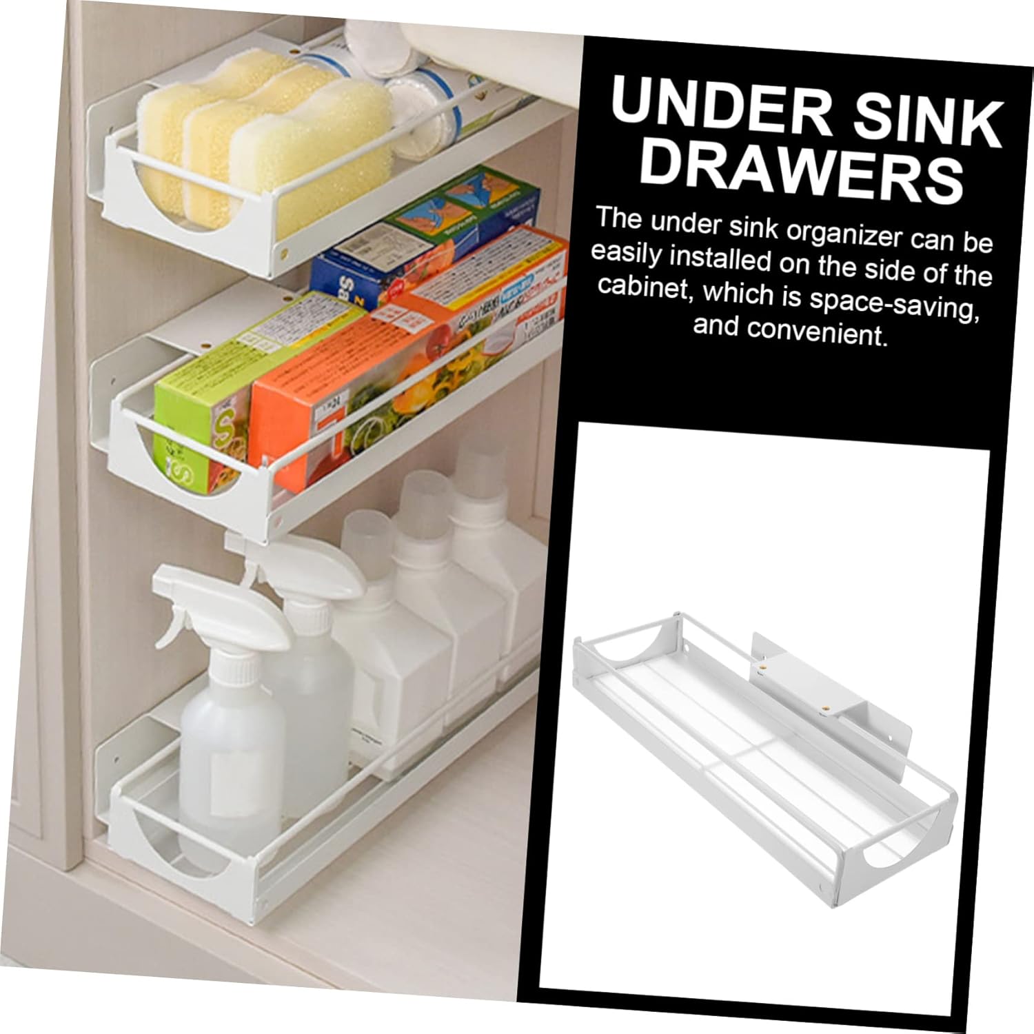 Package Include 1 × Storage Organizer Rack 1 × Glue 2 × Screws 2 × Expansion Tubes 4 × Screw Nuts Characteristics -Material:Carbon steel sliding sink storage rack -Color:White under sink spice holder - Size: 35.00X12.00X5.50cm/13.76X4.72X2.16in under sink storage rack - The rack is designed to be pulled out, which is more convenient to use than other normal storage organizers kitchen cabinet rack. - The installation is very easy and convenient, which will not take up much effort, easy to install under sink storage bins. - The storage shelf is exquisite in workmanship, beautiful and , can match your modern designed kitchen under sink drawers. - Owning the and break resistance ability, the kitchen cabinet organizer is very household rack. - It uses a guardrail prevent tableware from accidentally falling, you can use with confidence metal sink holder.Goods Informationunder sink organizer The kitchen storage organizer has enough capacity, which can meet your different storage needs.carbon steel sink shelf With sliding design, it allows you to easily access the item you need in the cabinet, very convenient to use.bathroom under sink organizer It has a wide range of application, suitable for kitchen under sink, cabinet and so on
