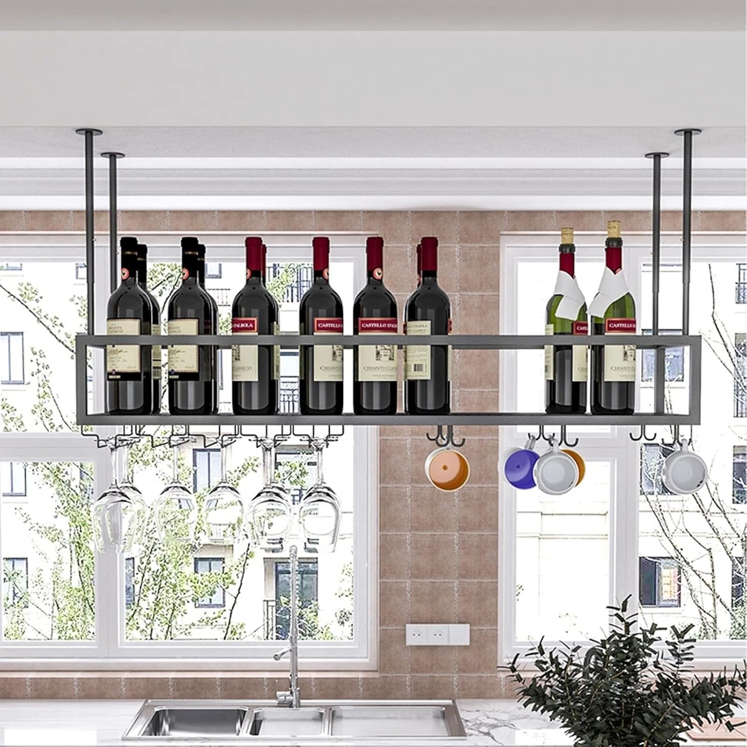 The classic and chic appearance gives the wine rack an elegant retro style. Reasonable rail design according to the market standard glass sizes, good use of space, exquisite and practical, e