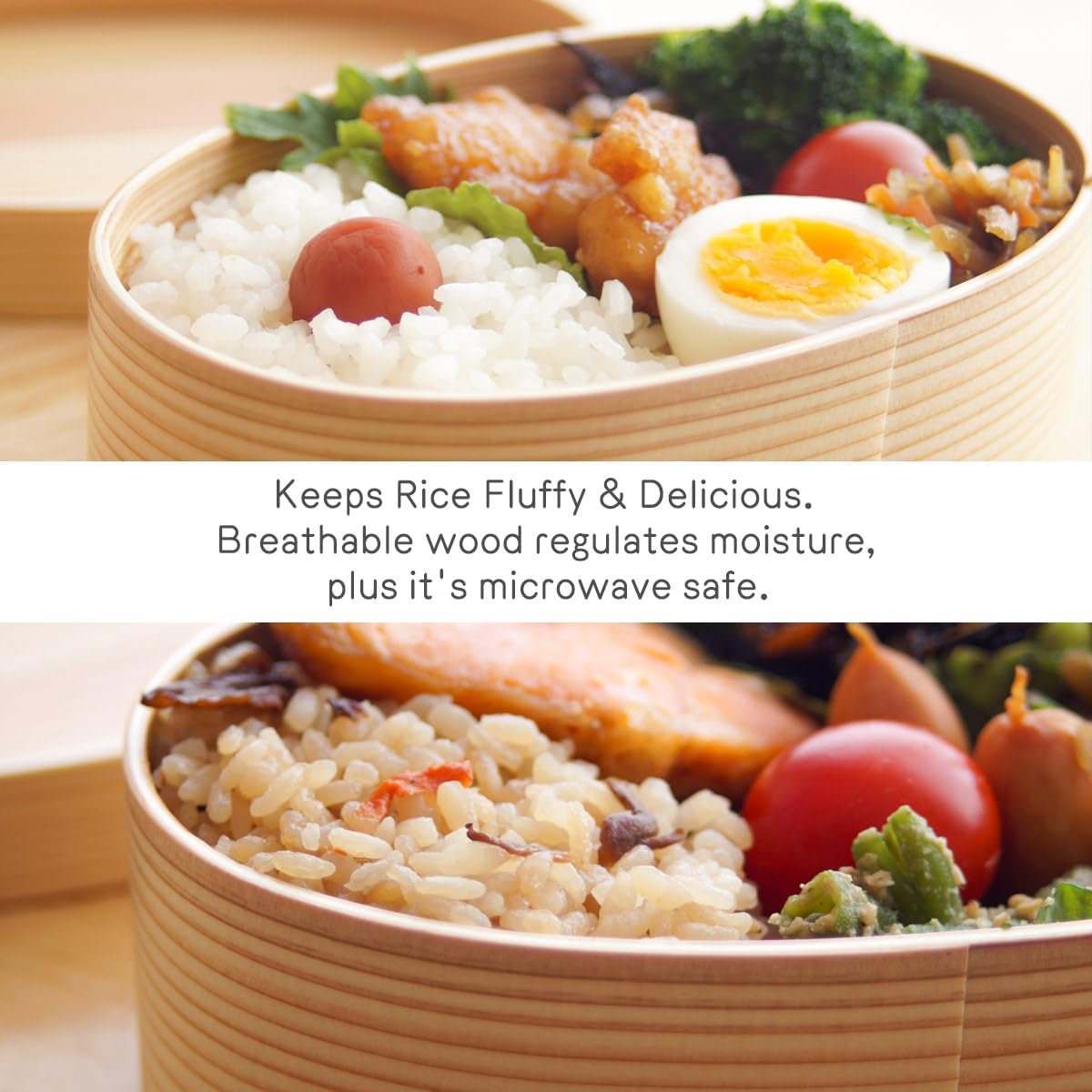 Experience the Perfect Blend of Japanese Tradition and Modern Convenience Bring the elegance of Japanese craftsmanship to your daily lunch routine with the Okome no otomo Wooden Bento Box. Crafted in the historic Yamanaka Lacquerware district, this "Magewappa" (curved wood) lunch box is the result of generations of expertise. Our master lacquerware artisans (Nushiya) have applied advanced finishing techniques to create a wooden container that isn't just beautiful—it’s built for your modern lifestyle.