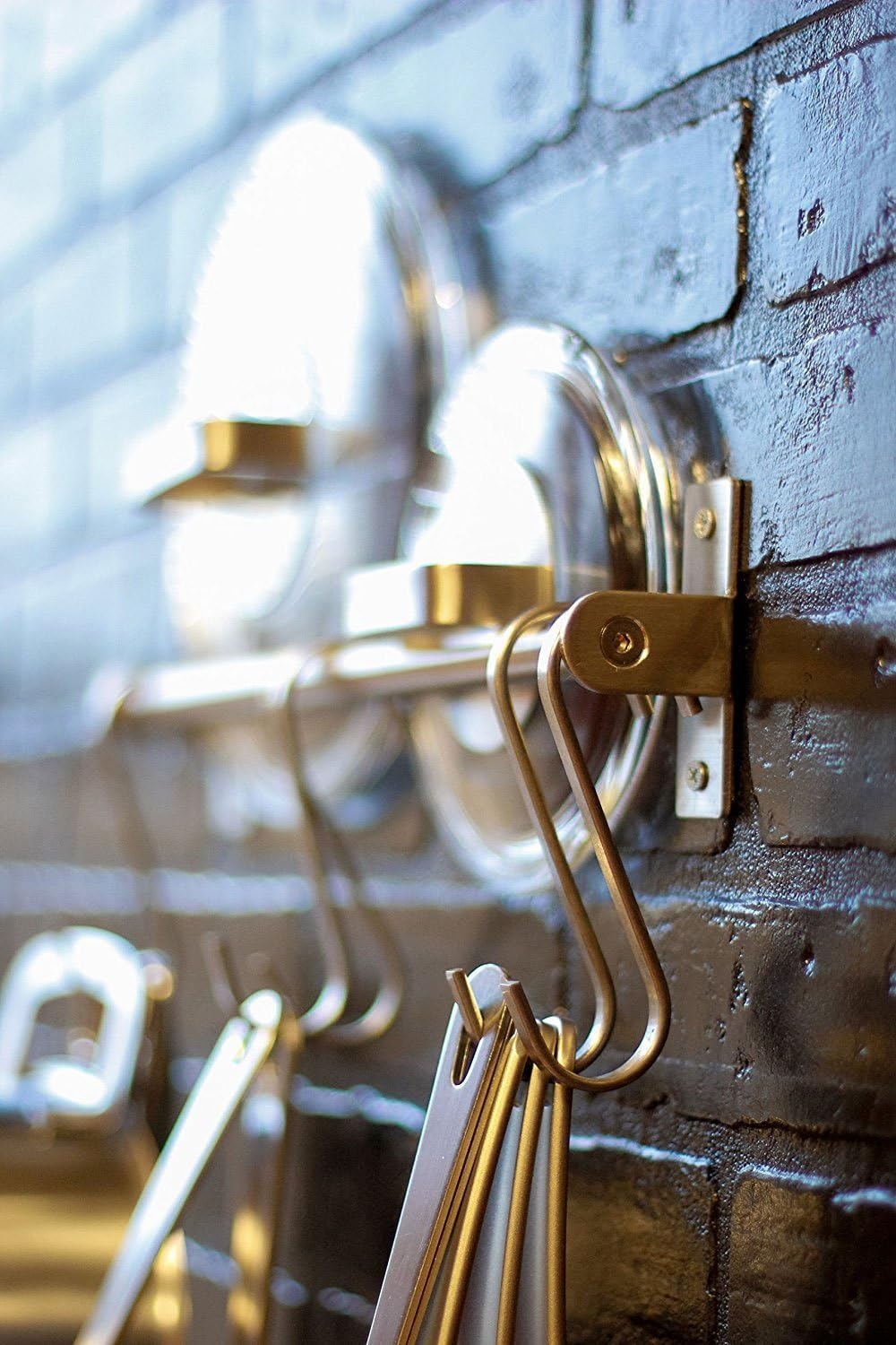 Includes 31.5" rail and 10 S hooks each 2 3/4". This kitchen rail system mounts to the wall quickly and easily to make use of under-cabinet space and organize your counter top like professional chef.
