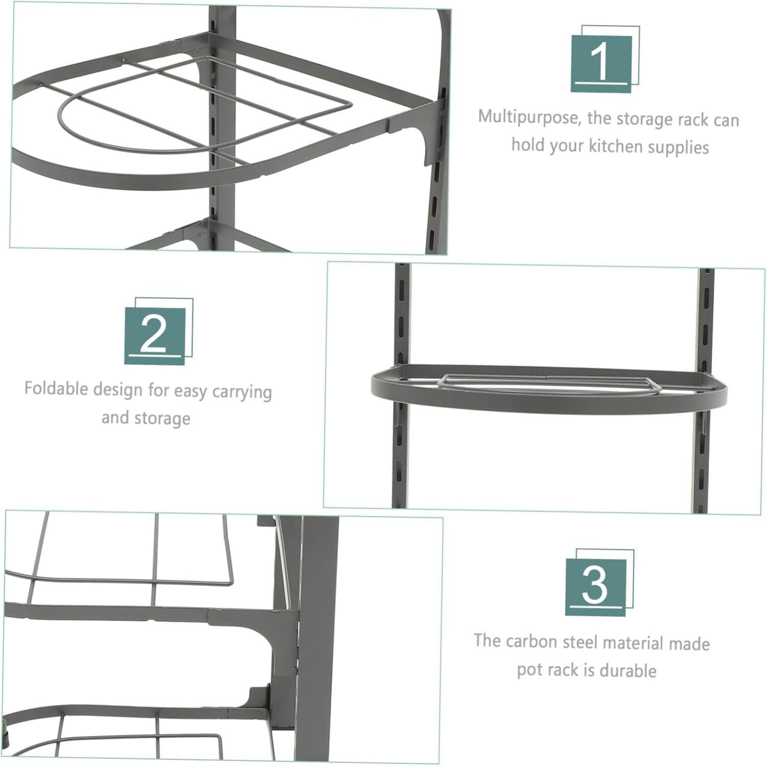 Package List 1 Features -Material:Carbon steel household pot rack - Color: Grey kitchen supply - Size: 52.00X27.00X22.00cm/20.44X10.61X8.65in professional pot organizer -Multipurpose, not only as a cabinet pot storage rack, it also can be used as a countertop spice bottle holder rack countertop pan organizer. -Multi-functional, the storage rack is suitable for steam pot, saucepan and pan with various thickness kitchen pot rack. -The rack is designed with strong stability, not easy to break, and convenient pan rack. -Multi-layer design storage shelf, convenient and compact, space-saving, can make full use of the kitchen vertical space multi-tier pot rack. -Household Pan Organizer is foldable, designed to fit under kitchen sink cabinets, maximizing space utilization professional pan organizer.Goods Descriptionhousehold pot rack With a simple structure design, the pot organizer rack is easy and convenient to install and detach, to use.professional pot organizer Easily foldable for convenient transportation and compact storage.desktop pan rack Made of carbon steel material, the pot storage rack is strong and , and wear-proof