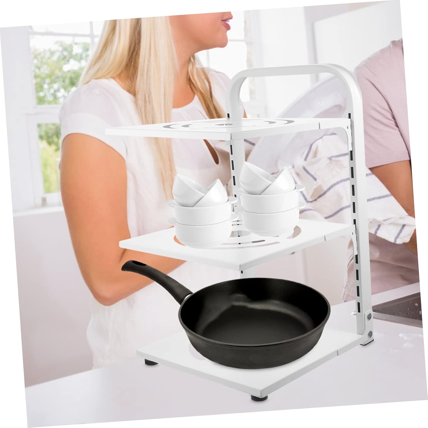 Package List 1 × Pot Organizer Rack Characteristics - Size: 27.00X24.00X41.00cm/10.61X9.43X16.11in pans organiser rack - Color: White pan rack -Material:Carbon steel pot organizer for cabinet -Multi-functional, the storage rack is suitable for steam pot, saucepan and pan with various thickness pan storage rack. -Multipurpose, not only as a cabinet pot storage rack, it also can be used as a countertop spice bottle holder rack multi-layer pan organizer. -The rack is designed with strong stability, to break, and organizer for countertop. -Multi-layer design storage shelf, convenient and compact, space-saving, full use of the kitchen vertical space kitchen adjustable pot storage rack. -Household Pan Organizer is adjustable, which makes it suitable for most sizes and shapes of pots convenient pan rack.Goods Informationkitchen adjustable pot storage rack The carbon steel material made pot rack is , to break or , can be used long time.pot organizer The storage rack is widely used in holding pot, frying pan and steam pot, but also storage your spice bottles etc.pan organiser rack The adjustable layer design allows you to the location of each layer according to the height of your pan and pot