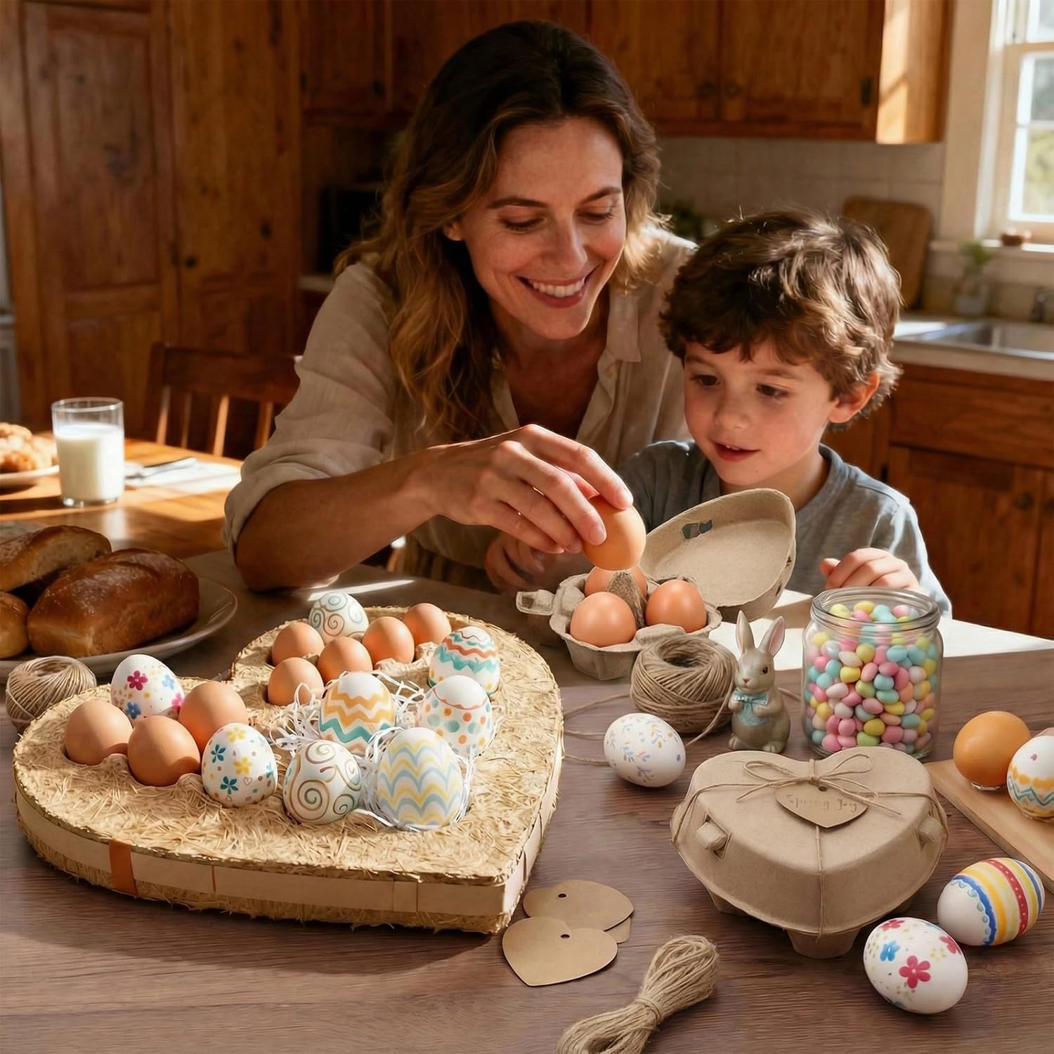 | Included Components | 48 Heart-shaped Egg Boxes, heart shaped label cards, jute rope, raffia |